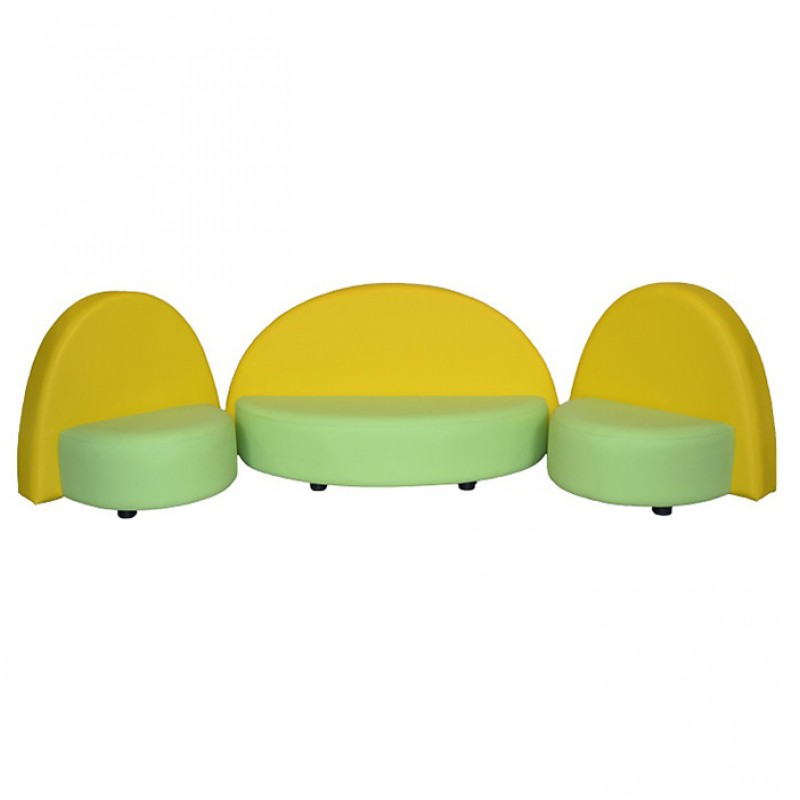 Комплект дитячих меблів Долька складається із 3 модулів, дивана та двох крісел. Модульний комплект Долька забезпечить комфорт, а також стане функціональною окрасою будь-якого приміщення. Відсутність гострих, твердих кутів забезпечує безпеку малюків під час гри.