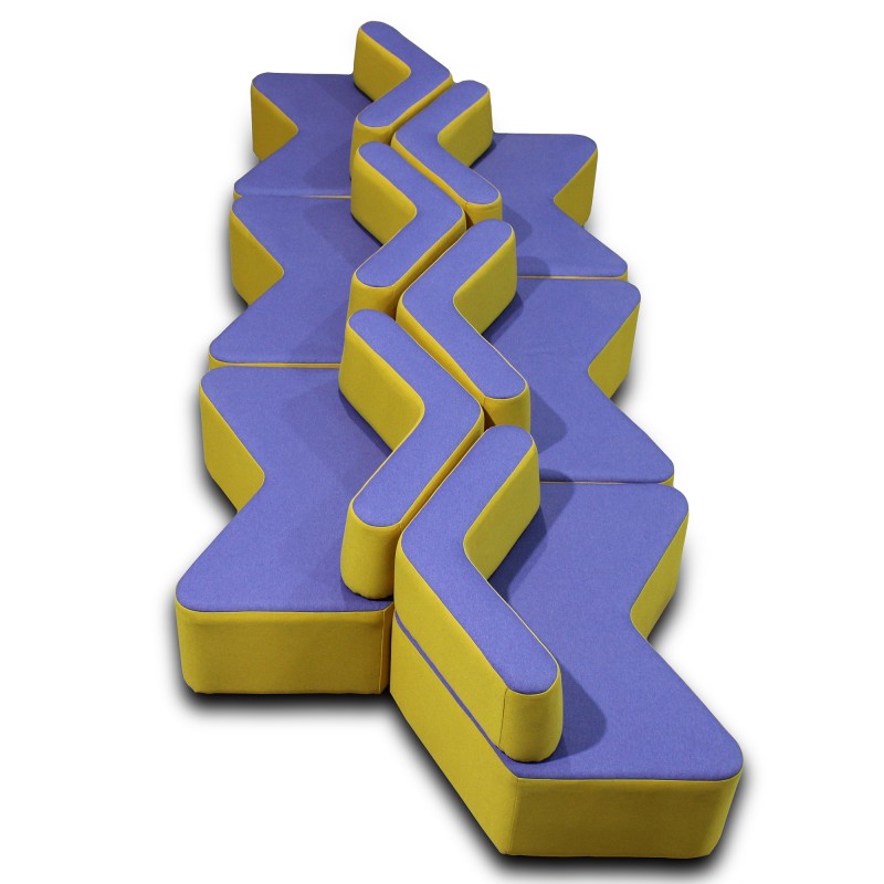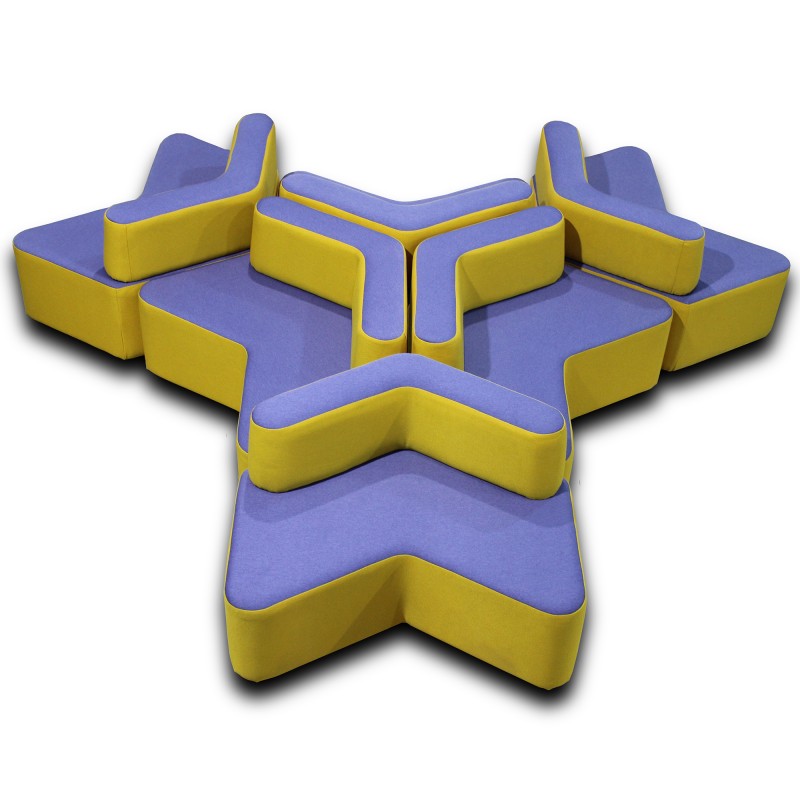Комплект дитячих меблів Брікс складається з 3 модулів, 3 диванів. Додатково можна придбати пуф Брікс. З кількох диванів та пуфів можна зібрати привабливі та унікальні комплекти меблів із серії Брікс. Модульний комплект Брікс забезпечить комфорт, а також стане функціональною окрасою будь-якого приміщення. Відсутність гострих, твердих кутів забезпечує безпеку малюків під час гри.