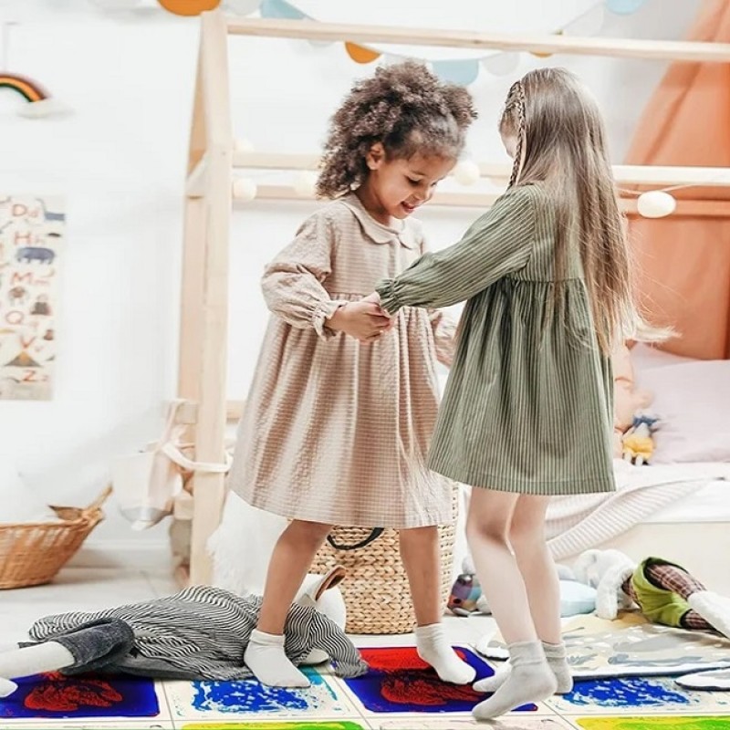 Такий килимок можна застосовувати для веселих сенсорних занять: шикуйтеся в ряд, бігайте від одного до іншого, грайте в ігри, стрибайте або танцуйте, а також розвиваючого килимка для дитини.