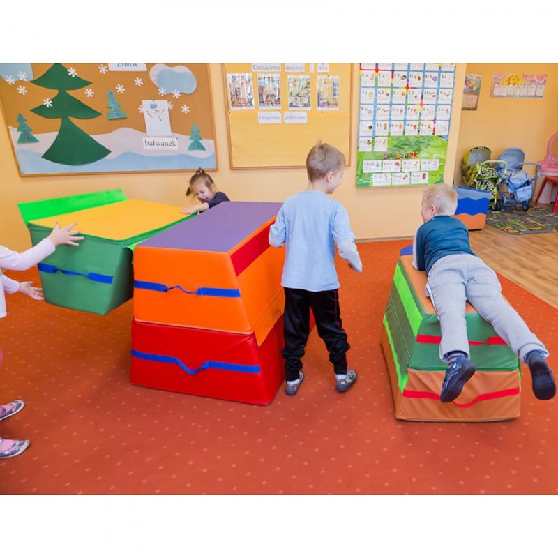 Великий Гімнастичний Ящик складається з трьох м'яких елементів, з'єднаних між собою за допомогою липучок. Ідеально підходить для ігор та гімнастичних вправ, колективних спортивних змагань, тренувань, навчальних програм фізичного розвитку. Конструкція розбірна, можна використовувати як окремі елементи для гри, так і легко поєднується з іншими модульними конструкціями. М'який спортивно-ігровий тренажер використовується для активного фізичного розвитку дітей дошкільного та раннього шкільного віку.
