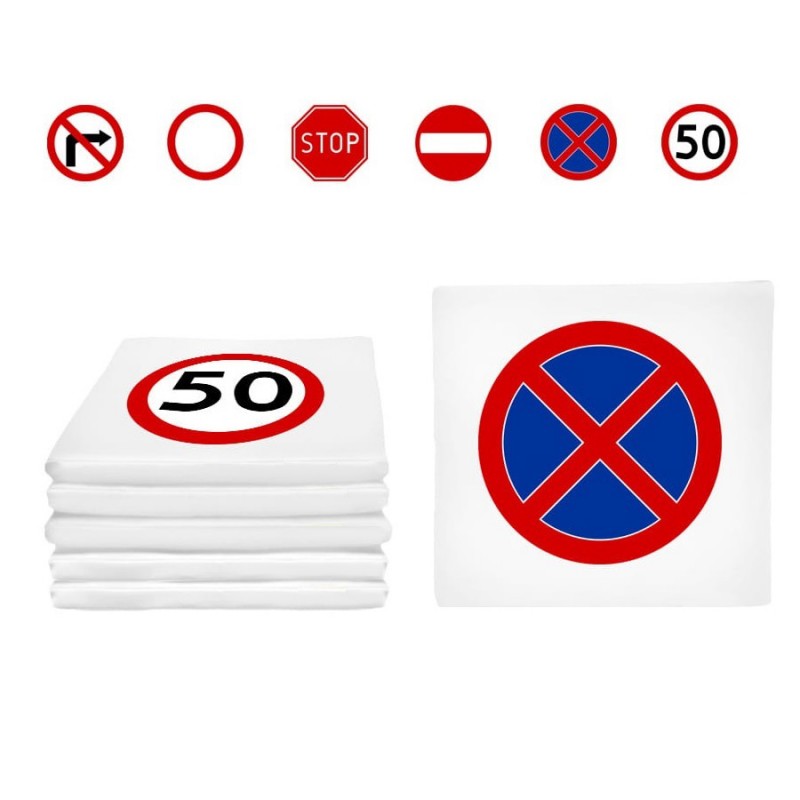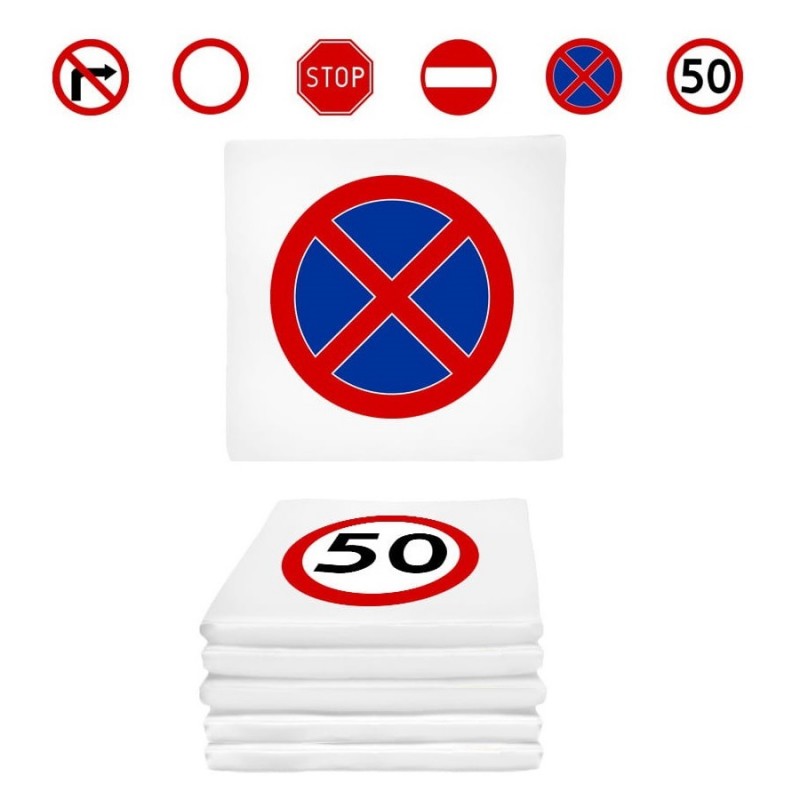Для дітей такого роду комплекти є місцем для сидіння під час навчальних занять у студіях раннього розвитку та дитячих садках. Нанесені на сидіння зображення Забороняючих Знаків ПДР сприяють їх вивченню та служать інструментом навчальних та розважальних ігор. Це ідеальний інструмент для командних ігор як у приміщенні, так і на вулиці. Подушки наповнені поролоном, що робить їх зручними, легкими та безпечними.