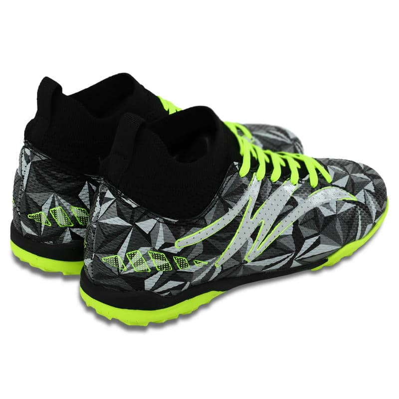Це відмінне футбольне взуття, виготовлене з високоякісних матеріалів і продумане до дрібниць. Гумова підошва з безліччю шипів забезпечує зчеплення з покриттям. Поліуретановий верх має яскравий дизайн і спеціальну рельєфну текстуру поверхні. Завдяки такій текстурі футболісту буде значно легше контролювати м'яч. Носок у конструкції запобігає потраплянню шматочків покриття або ґрунту у взуття. Для фіксації на ногах використовується шнурівка, яка забезпечує комфортну посадку і щільне прилягання взуття до ніг. Під шнурівкою розташована вставка з повітропроникної тканини, яка гарантує ефективне охолодження ніг.