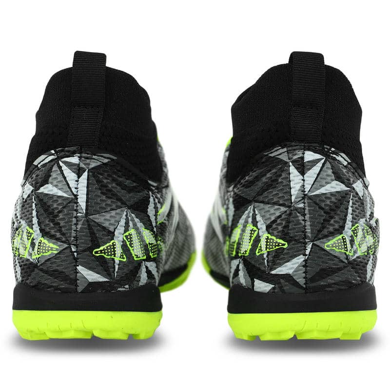 Це відмінне футбольне взуття, виготовлене з високоякісних матеріалів і продумане до дрібниць. Гумова підошва з безліччю шипів забезпечує зчеплення з покриттям. Поліуретановий верх має яскравий дизайн і спеціальну рельєфну текстуру поверхні. Завдяки такій текстурі футболісту буде значно легше контролювати м'яч. Носок у конструкції запобігає потраплянню шматочків покриття або ґрунту у взуття. Для фіксації на ногах використовується шнурівка, яка забезпечує комфортну посадку і щільне прилягання взуття до ніг. Під шнурівкою розташована вставка з повітропроникної тканини, яка гарантує ефективне охолодження ніг.