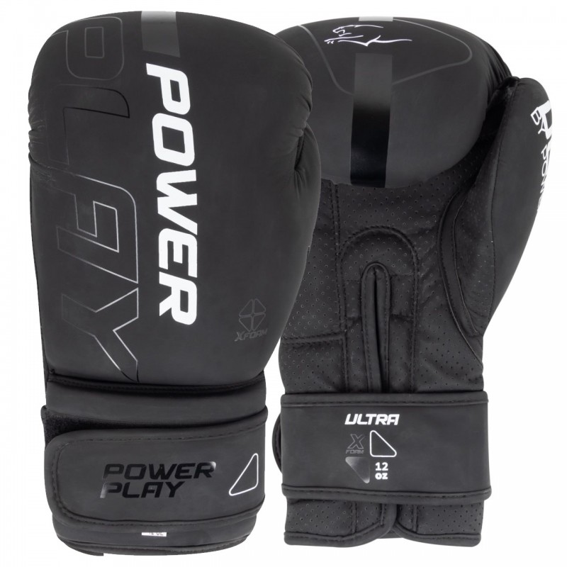 Боксерські рукавиці PowerPlay Ultra Mat 14 унцій, чорний-білий, код: PP_3024_14oz_Bl/White