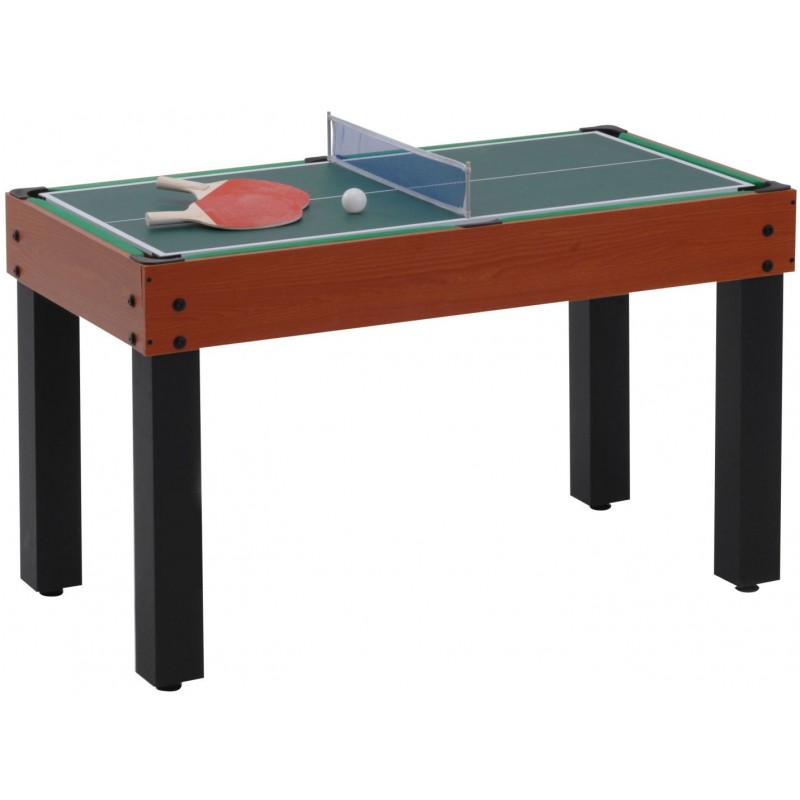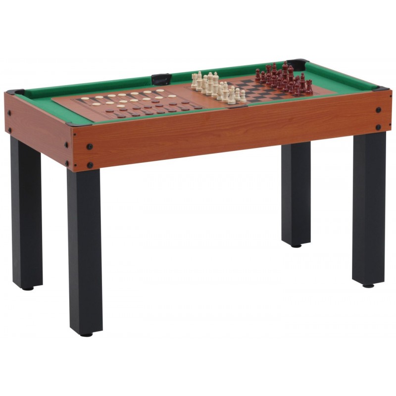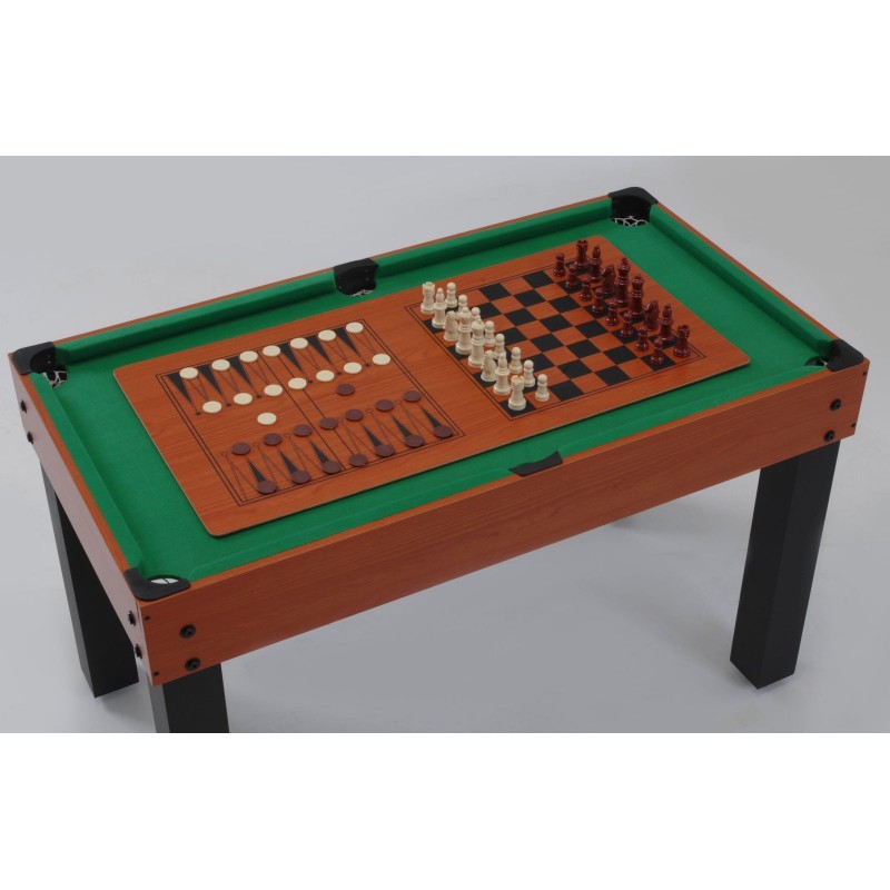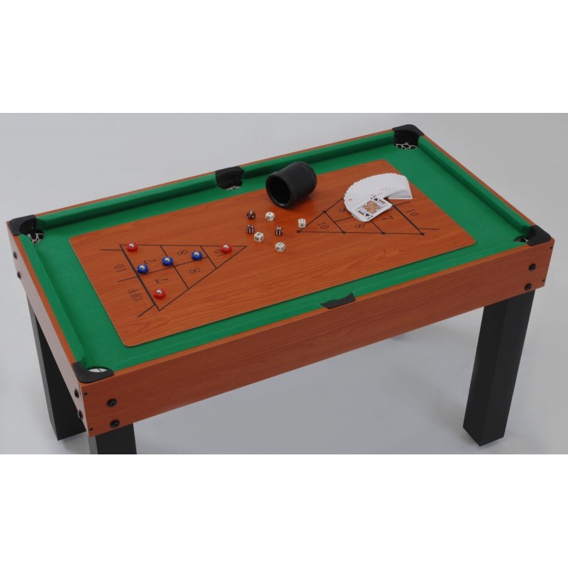 - Включає 12 настільних ігор: настільний футбол, більярд, настільний теніс, хокей, боулінг, шаффлборд, нарди, блекджек, шахи, шашки, кістки з чашею, гральні карти.