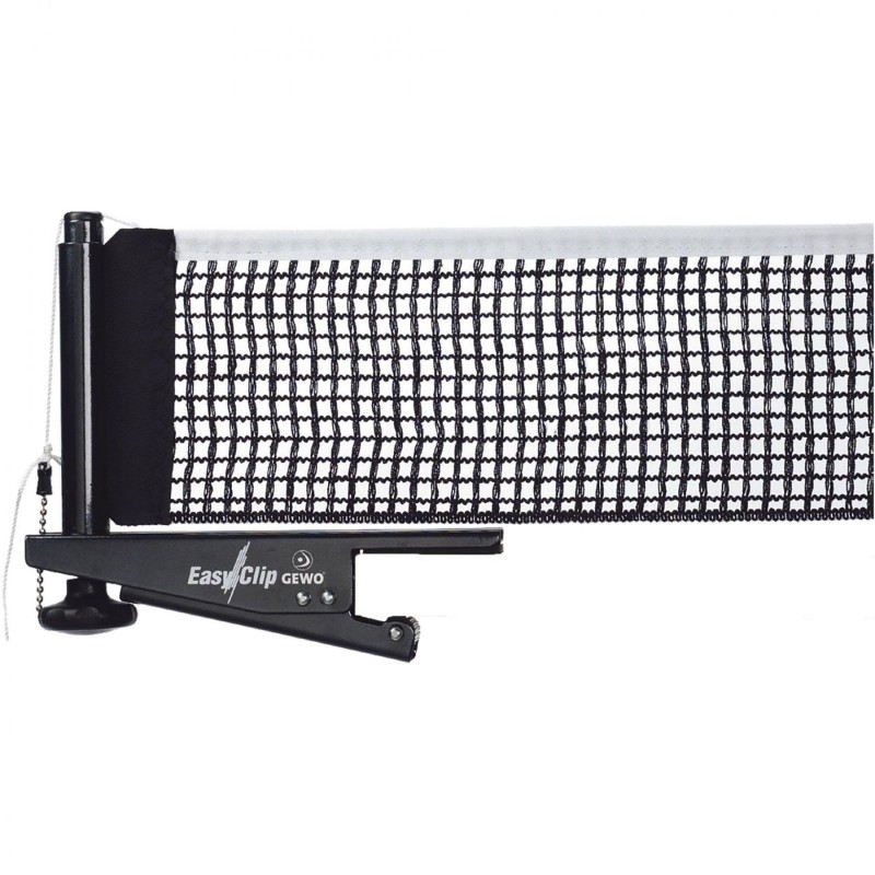 Сітка для настільного тенісу Gewo Easy Clip — це саме те, що вам потрібно, щоб розпочати гру в настільний теніс, його легко одягати та знімати, коли стіл для настільного тенісу потрібно зберігати. Сітка для настільного тенісу Gewo Easy Clip підходить для більшості столів стандартного розміру та відрізняється професійним виглядом і довговічністю! Дуже компактна металева сітка з пластиковим покриттям, просте у використанні кліпсове кріплення. За допомогою гвинта регулювання висоти та петлі натягу сітки можна оптимально відрегулювати висоту та натяг сітки, гумові накладки захищають ваш стіл. Відповідає специфікаціям ITTF і DTTB.