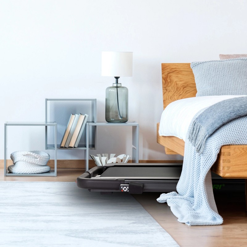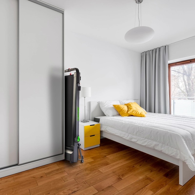 - Компактний і складаний дизайн : висота бігової доріжки в складеному стані становить лише 16 см, тому її легко зберігати під ліжком або в шафі.