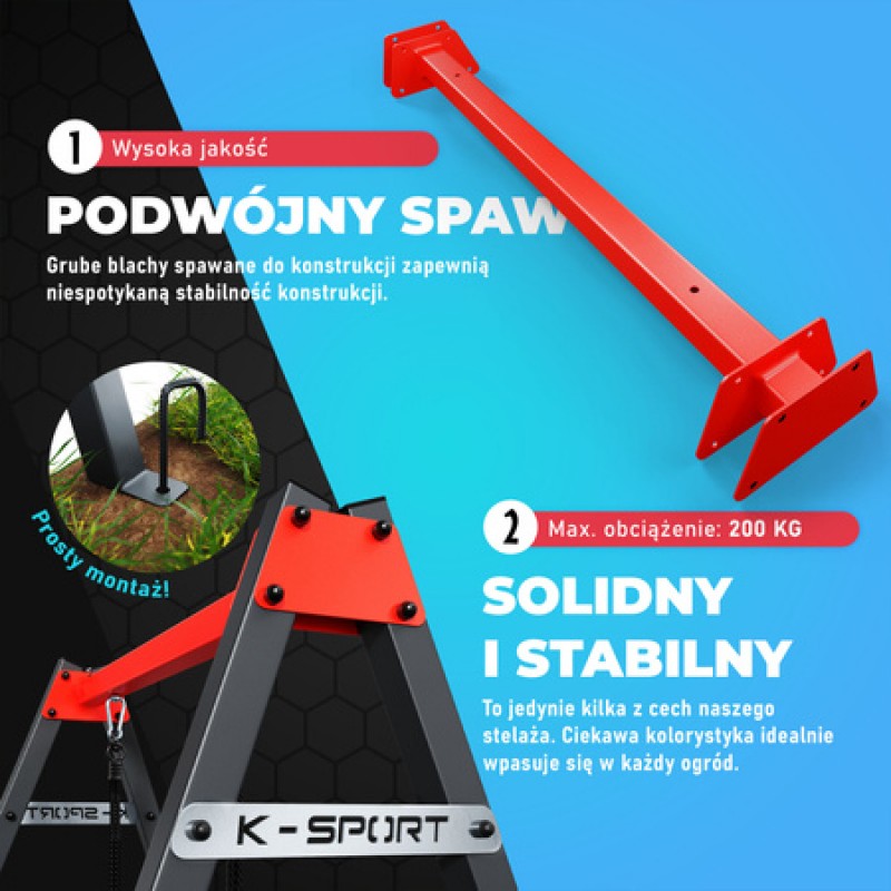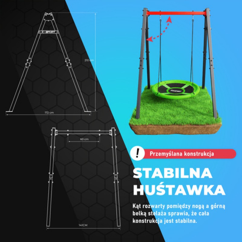 СУПЕР рама + Гніздо лелеки K-Sport KSOZ016 MAX FUN- Якісний, міцний і безпечний каркас для гойдалок і гнізда лелеки, виготовлений зі сталевих профілів перетином 50х50х2.