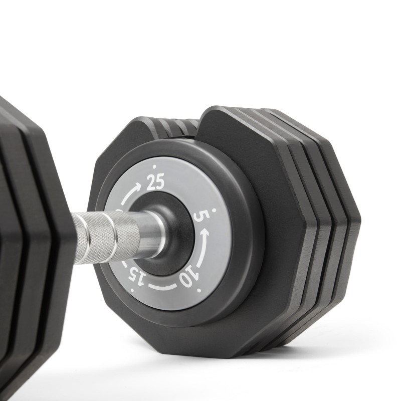 Регульована гантель вагою 25 кг від Half Human ідеально підійде для розвитку сили, збільшення амплітуди рухів, усунення силового дисбалансу та додасть інтенсивності вашим тренуванням. Завдяки п'яти рівням регулювання ваги - 5 кг, 10 кг, 15 кг, 20 кг і 25 кг - ця міцна гантель пропонує широкий спектр тренувань, дозволяючи ефективно тренувати м'язи ніг, рук, спини, грудей, плечей і живота.
