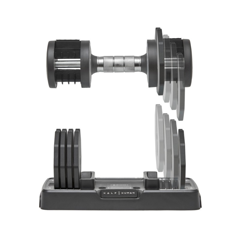 Гантель Half Human продається окремо і включає практичний кейс для зберігання, який допомагає тримати обладнання в порядку і легкодоступному місці. Цей незамінний тренажер дозволяє ефективно виконувати різноманітні вправи. Регульована гантель вагою 25 кг від Half Human - це не тільки функціональний та зручний тренажер, але й надійна інвестиція у вашу форму та здоров'я.