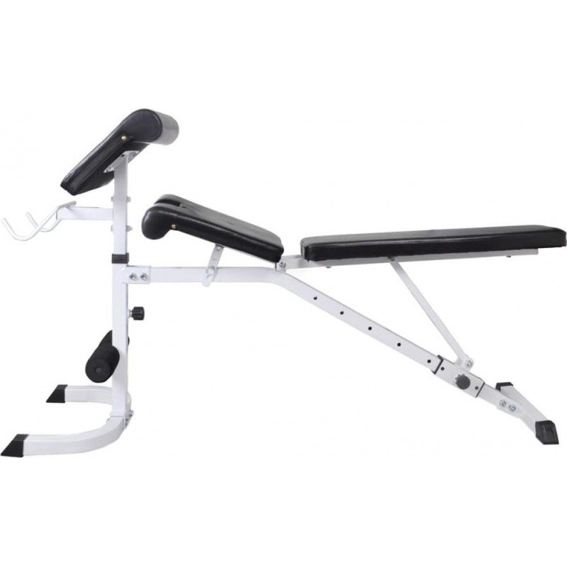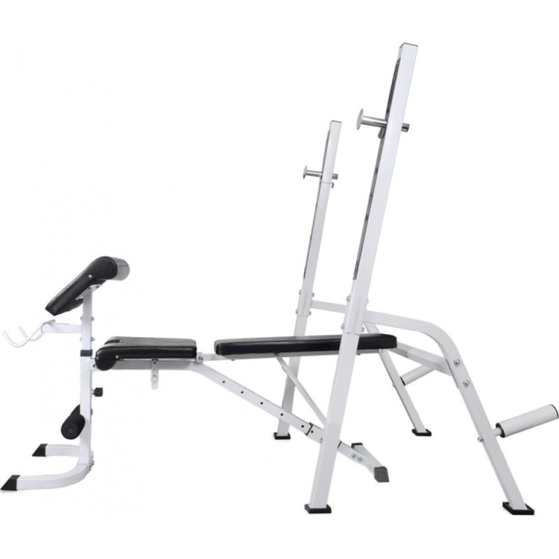 Ця лава з обтяженнями підходить для багатьох різних видів вправ. Спинка зміцнить м'язи спини, а проповідник потренує руки. Цей широкий діапазон можливостей дозволяє ефективно тренувати все тіло, а різні параметри налаштувань дозволяють адаптувати тренування до ваших індивідуальних потреб. Міцна сталева конструкція забезпечує безпечне використання. Міцна оббивка з бавовняною підкладкою забезпечує максимальний комфорт.