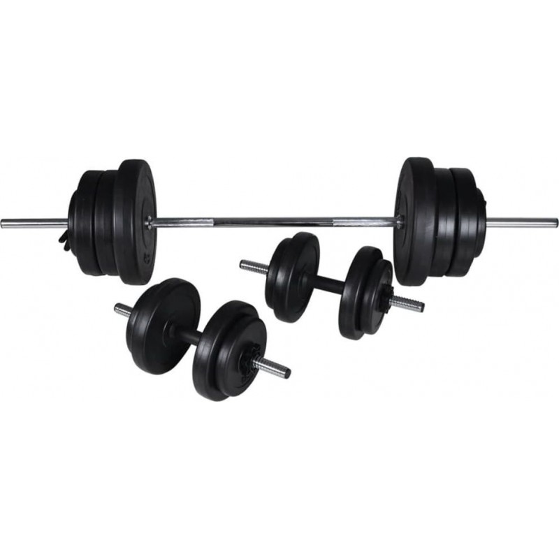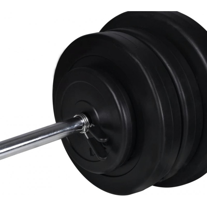 Набір штанги та гантелей має міцні хромовані штанги з нековзними ребристими ручками, швидкознімні пружинні затискачі (для штанг) і зірчасті гайки (для гантелей), які дозволяють закріпити пластини. Тож ви можете тренуватися, не турбуючись про свою безпеку. Ваги мають міцні поліетиленові оболонки. Їх можна комбінувати різними способами, залежно від ваших тренувальних цілей.