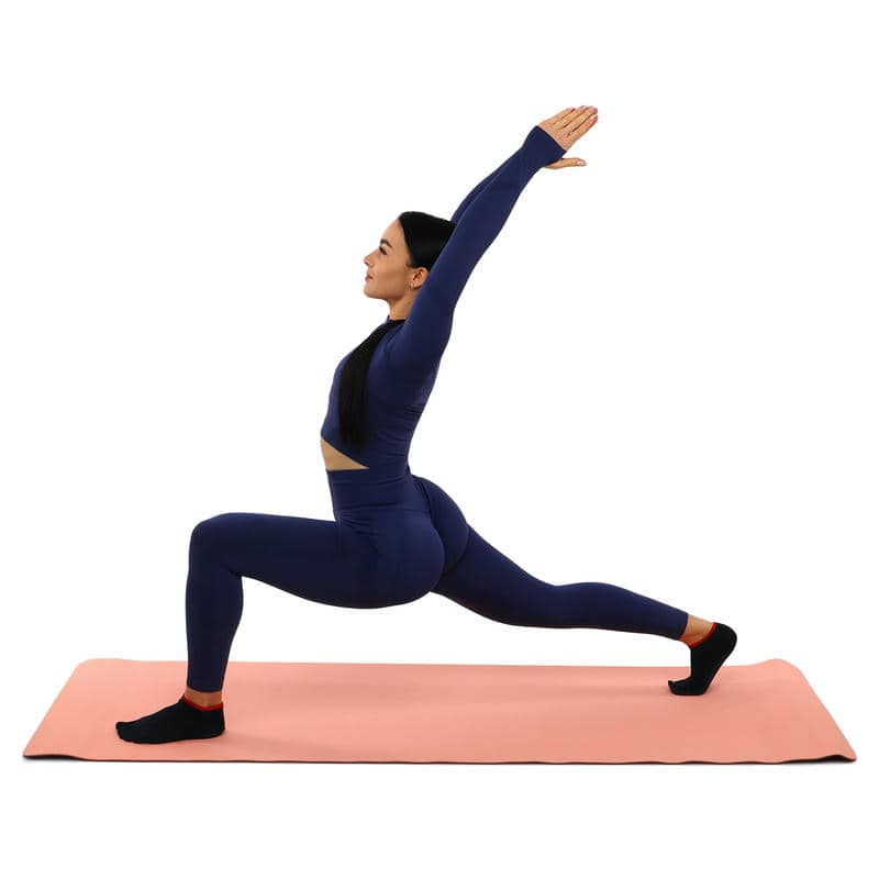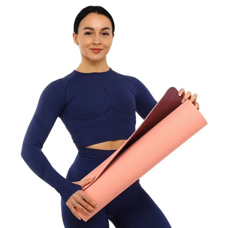 Килимок складається з двох шарів, з'єднаних під впливом високої температури, тому відрізняється підвищеною міцністю. Зовнішня сторона йога килимка є більш рельєфною поверхнею, ніж внутрішня, і має протиковзну дію. Завдяки цьому заняття абсолютно безпечні: ноги не ковзають, а значить, ви не ризикуєте впасти.