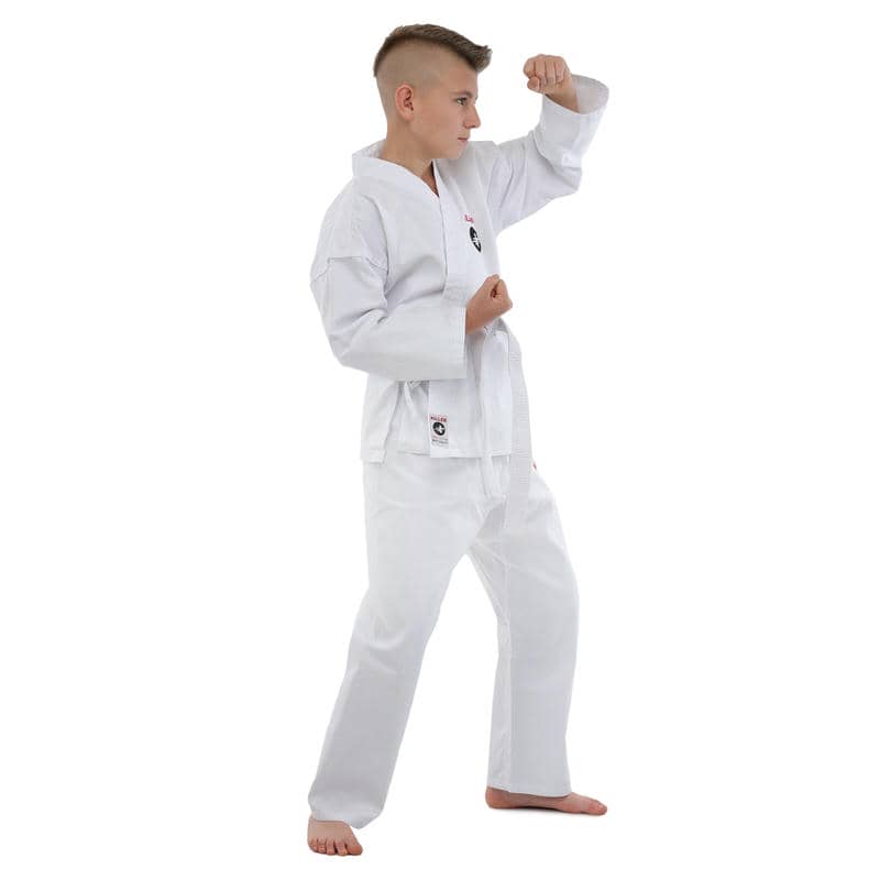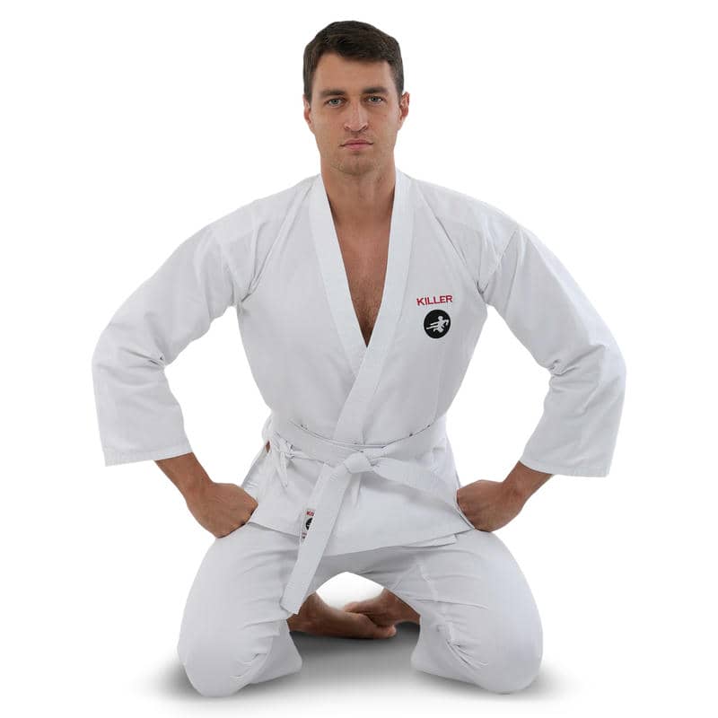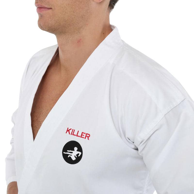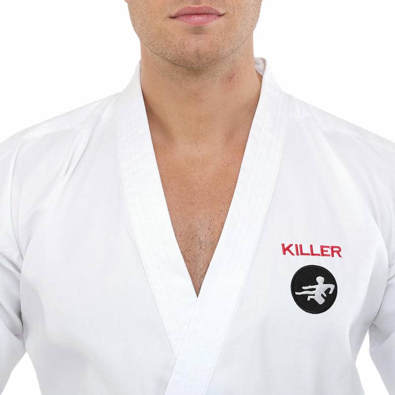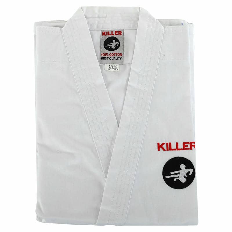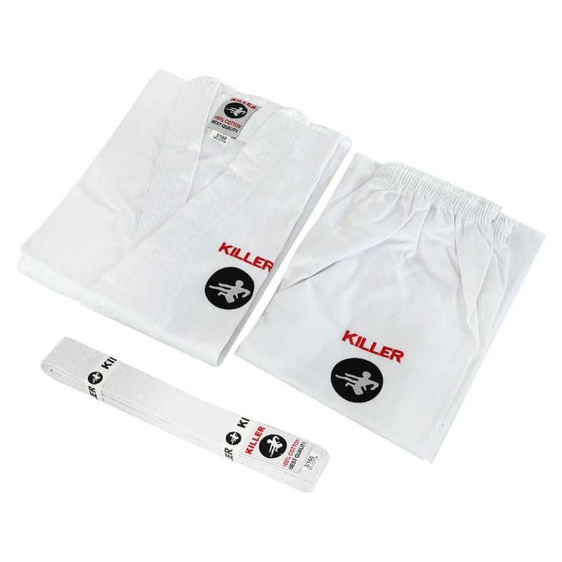 Кімоно Killer є високоякісним екіпіруванням для карате, яке складається з трьох елементів: куртка-кімоно, штани і пояс.Всі елементи виконані з міцного та дихаючого матеріалу, що складається з бавовни та поліестеру, який гарантує їхню гіпоалергенність та приємні відчуття на шкірі. Щільність тканини становить 240 г/м², що робить кімоно досить міцним і довговічним, зберігаючи при цьому легкість та гнучкість, необхідні для динамічних рухів карате.