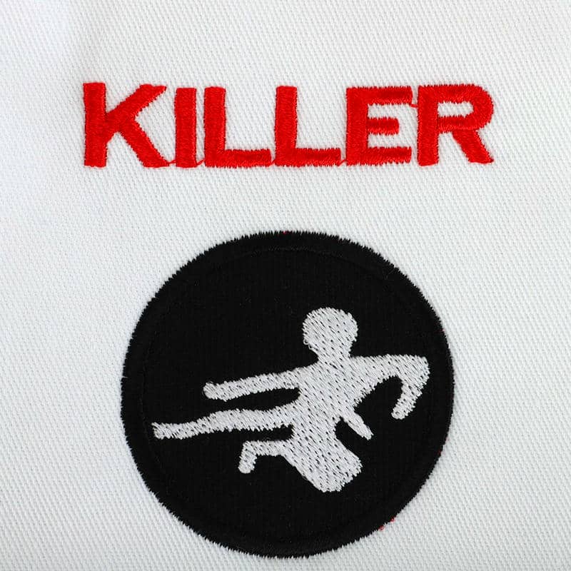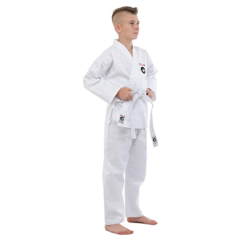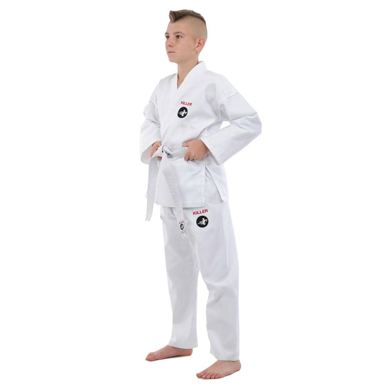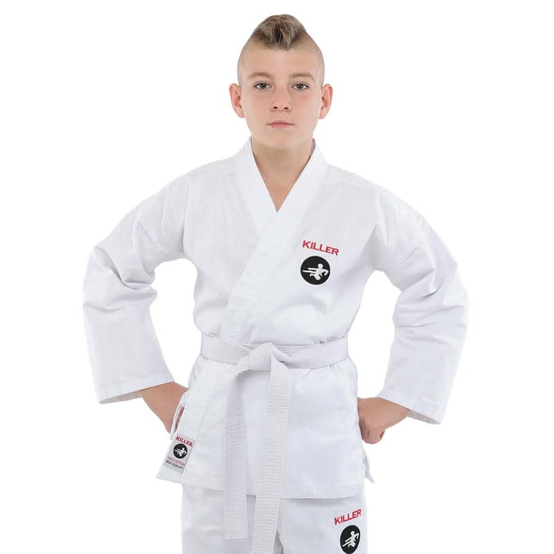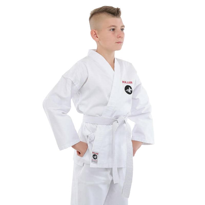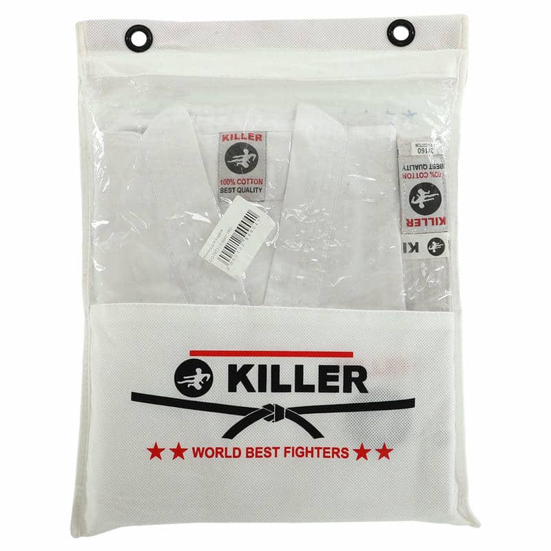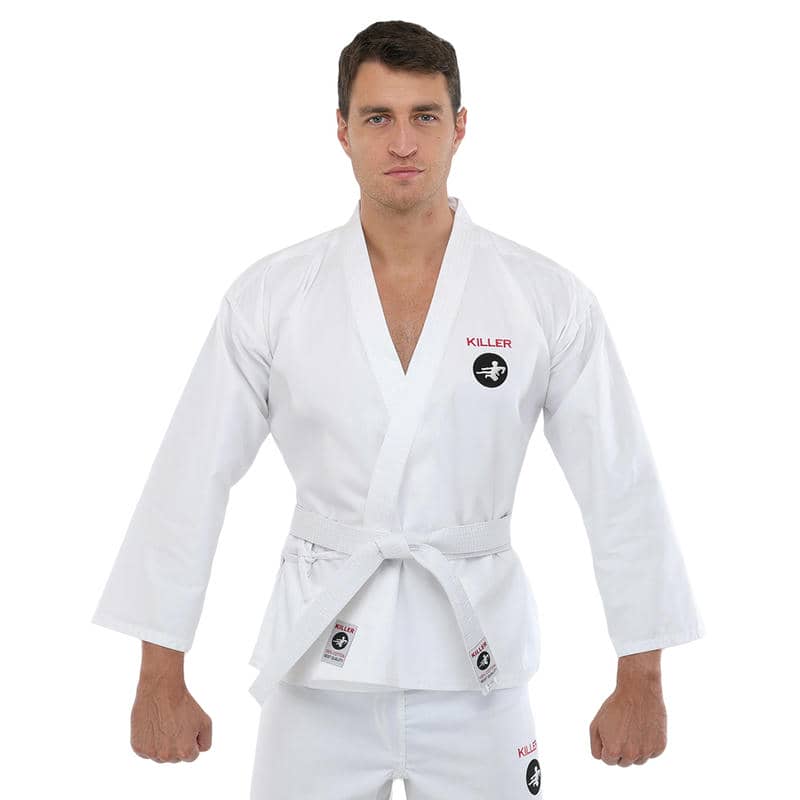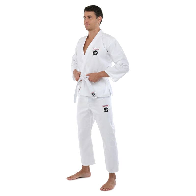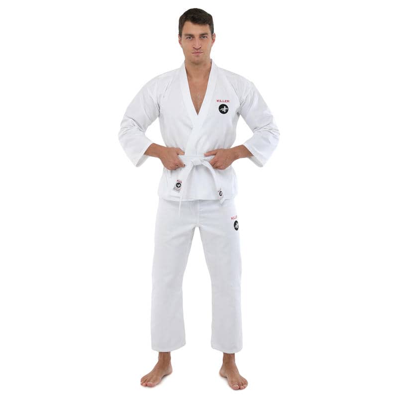 Кімоно Killer є високоякісним екіпіруванням для карате, яке складається з трьох елементів: куртка-кімоно, штани і пояс.Всі елементи виконані з міцного та дихаючого матеріалу, що складається з бавовни та поліестеру, який гарантує їхню гіпоалергенність та приємні відчуття на шкірі. Щільність тканини становить 240 г/м², що робить кімоно досить міцним і довговічним, зберігаючи при цьому легкість та гнучкість, необхідні для динамічних рухів карате.