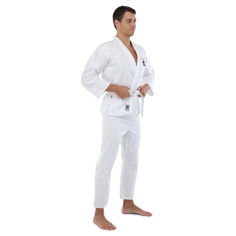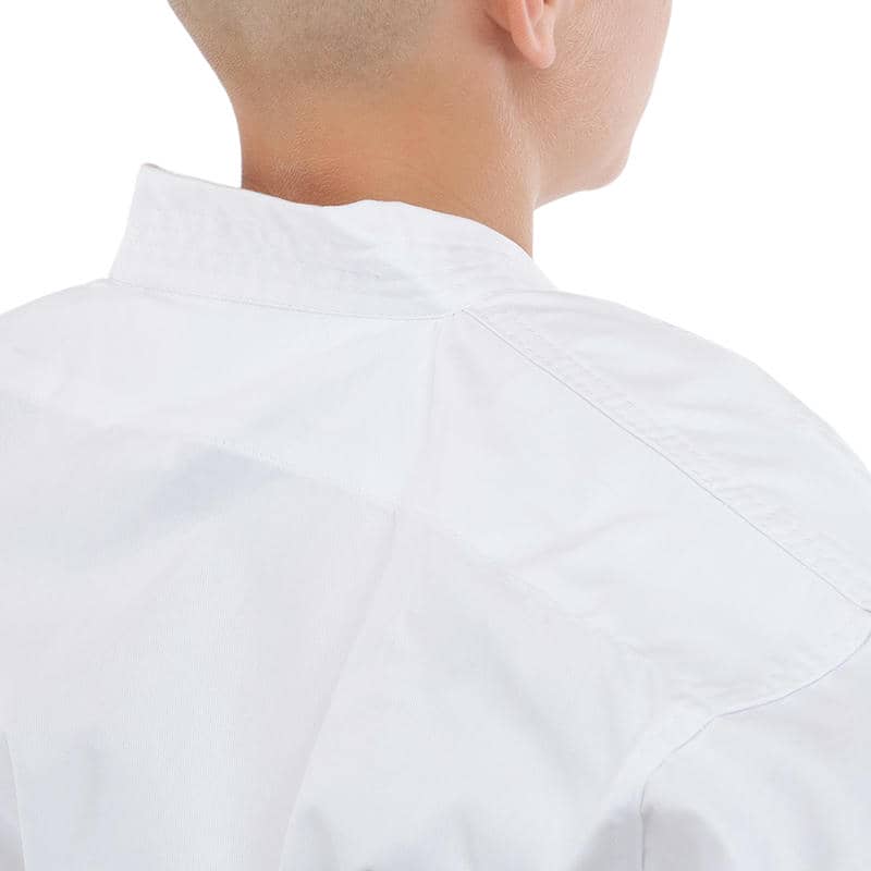 Куртка-кімоно має традиційний крій, що забезпечує вільне облягання та комфорт під час тренувань. Вона забезпечена широкими рукавами, які не обмежують рухи рук, та укріпленими швами для додаткової міцності. Штани також виконані з урахуванням специфіки карате – вони мають вільний крій та еластичний пояс, який забезпечує надійну фіксацію та комфортне носіння.