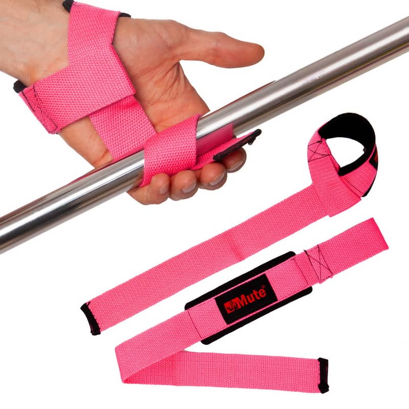 Щоб домогтися максимальної концентрації на техніці під час виконання станової тяги або підтягувань, варто використовувати лямки від бренду MUTE. Вони виготовлені з міцного поліестеру. Ширина лямки становить 3,7 см, а довжина - 55,5 см. Такої довжини достатньо, щоб зафіксувати виріб на зап'ясті та зробити кілька витків навколо грифа. З'єднання виходить надійним, і штанга не розкручує пальці як раніше.