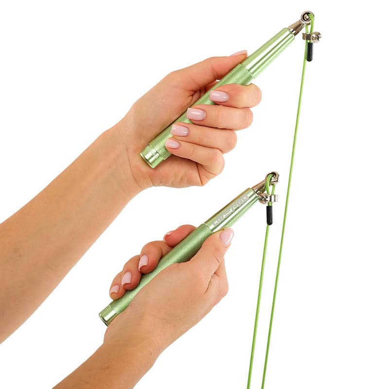 Ручки скакалки виконані з авіаційного алюмінію. З одного боку це дає змогу зробити снаряд легким, а з іншого - дуже міцним. У разі, якщо ручка вилетить з руки, вона залишиться цілою. Трос виконаний зі сталі, що дає змогу обертати його з будь-якою швидкістю. Тертя в області кріплення до ручки не призведе до розриву.