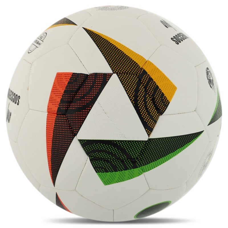 HYBRID SOCCERMAX FB-7992 також відрізняється своєю зручністю у використанні - його окружність становить 68.5-69.5 см, що є оптимальним розміром для категорії м'яча №5. Вага 410-450 г надає стабільний політ та контроль під час дриблінгу та ударів. Бутилова камера надійно утримує повітря, запобігаючи частим підкачуванням і забезпечуючи постійний тиск. М'яч виготовлений із високоякісного поліуретану (PU), який не тільки збільшує термін служби, але й покращує контакт із ногою, дозволяючи гравцеві відчути м'яч при кожному торканні.