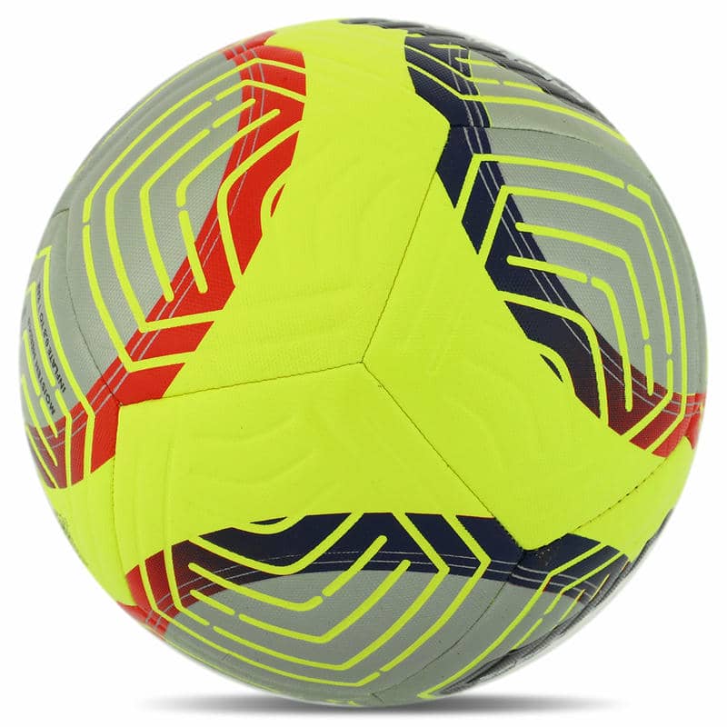 - Яскравий дизайн м'яча забезпечує хорошу видимість на полі в будь-яких погодних умовах, що особливо важливо при швидкому темпі гри.