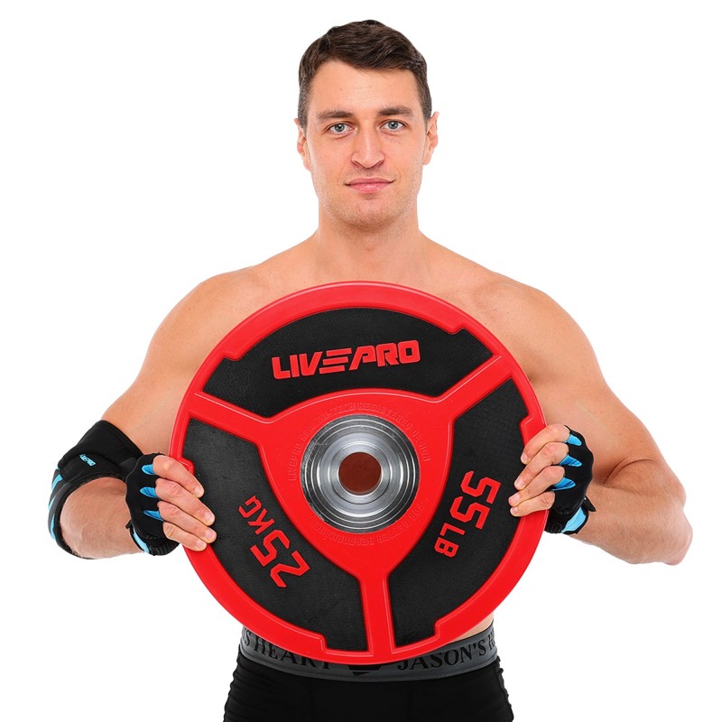 Бамперний диск поліуретановий LiveUp ø50.5мм, 25кг, червоний-чорний, код: LP8027-25