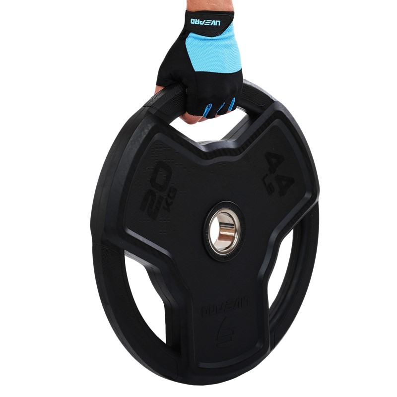 Диски гумові з потрійним хватом та металевою втулкою LiveUp ø50мм, 20кг, чорний, код: LP8330-20