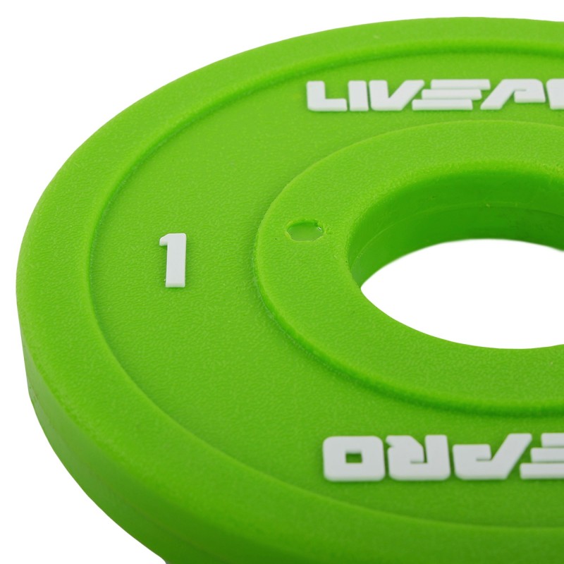 Диски поліуретанові з металевою втулкою LiveUp ø50мм, 1кг, зелений, код: LP8028-1