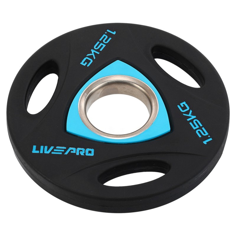 Диски поліуретанові з потрійним хватом та металевою втулкою LiveUp ø51мм, 1,25кг, чорний, код: LP8020-1_25
