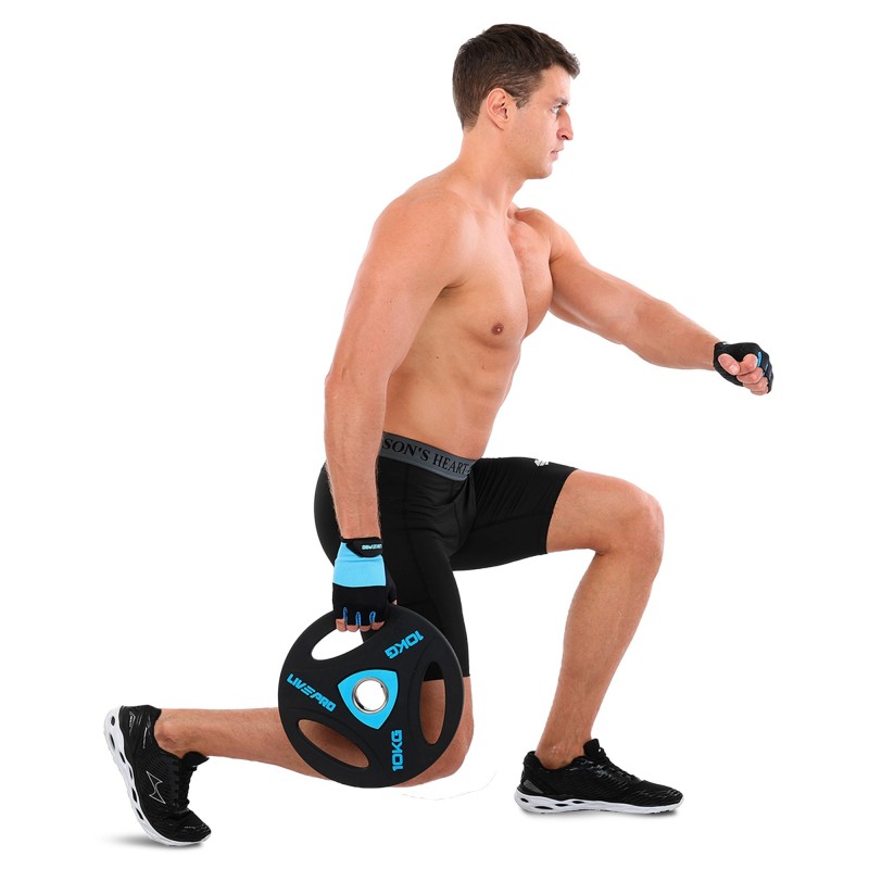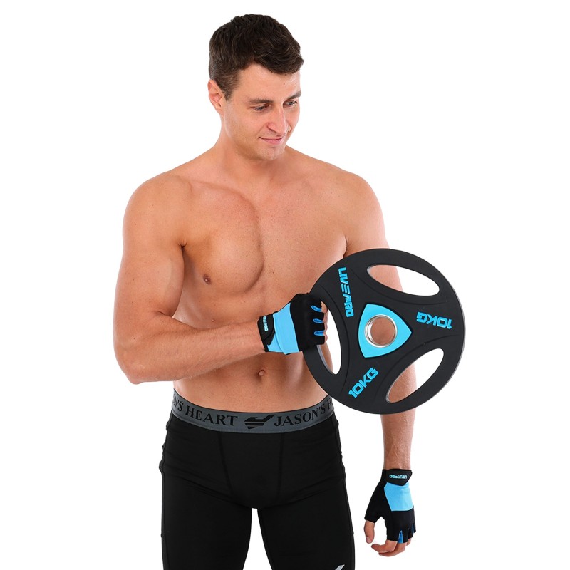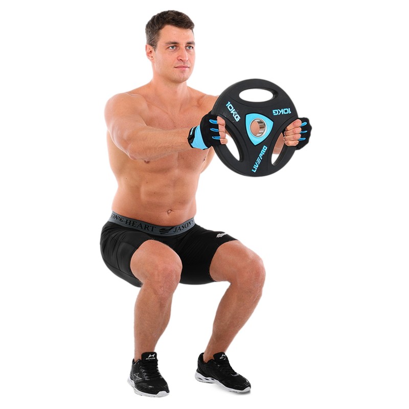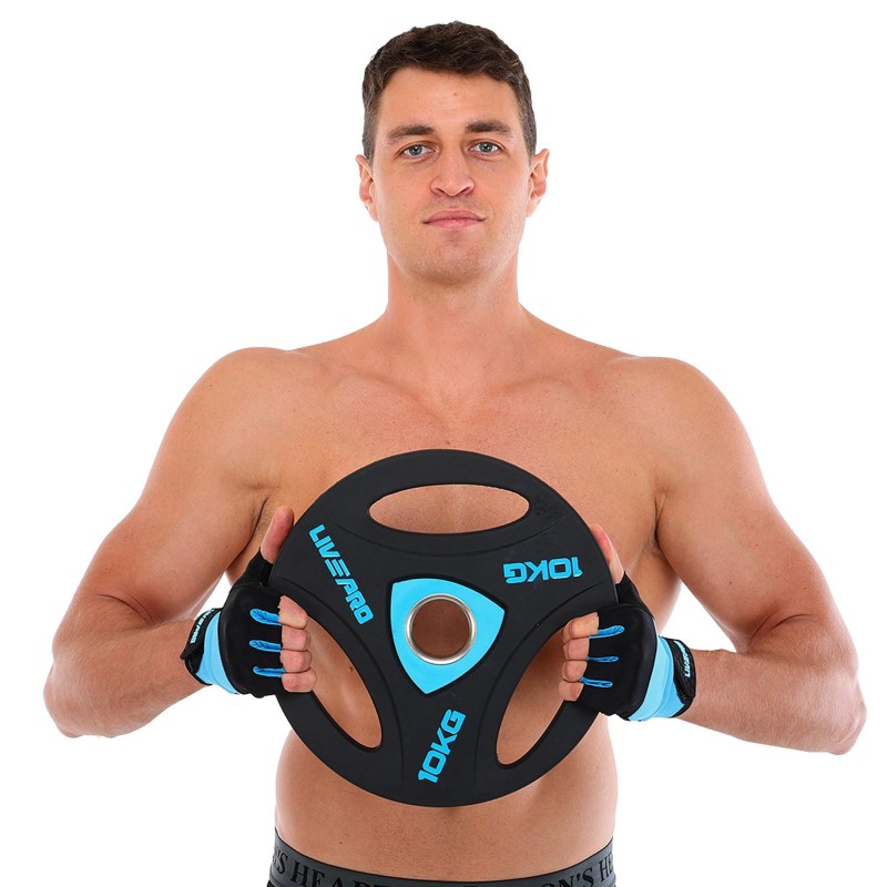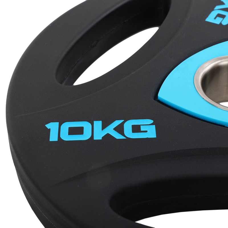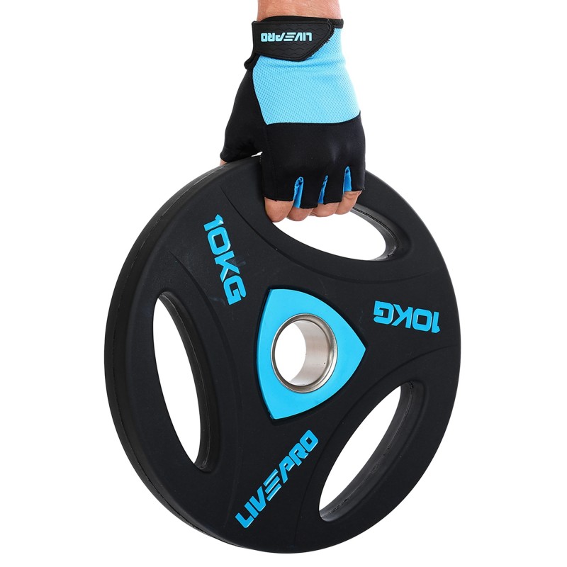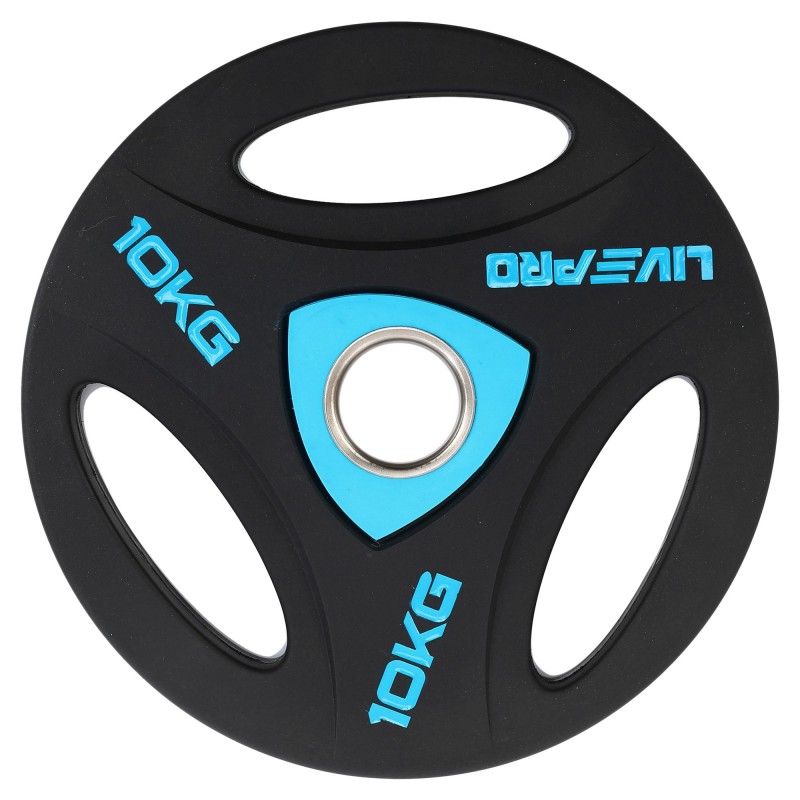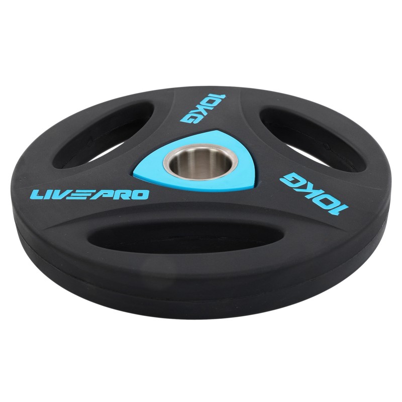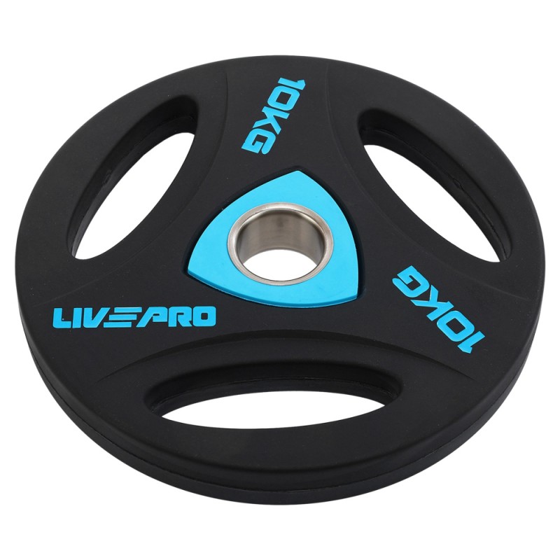 Диски поліуретанові з потрійним хватом та металевою втулкою LiveUp ø51мм, 10кг, чорний, код: LP8020-10