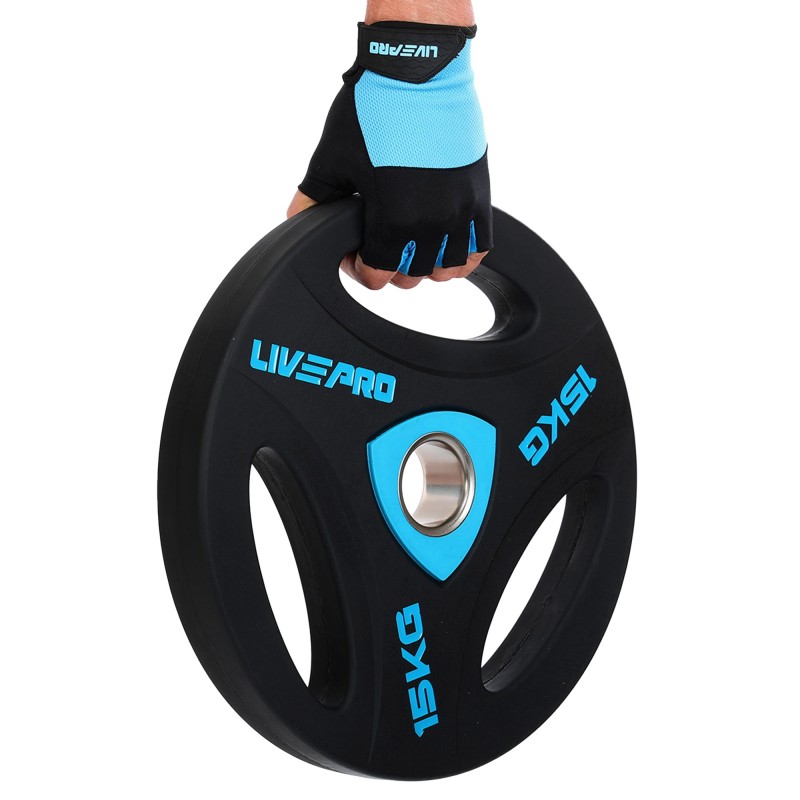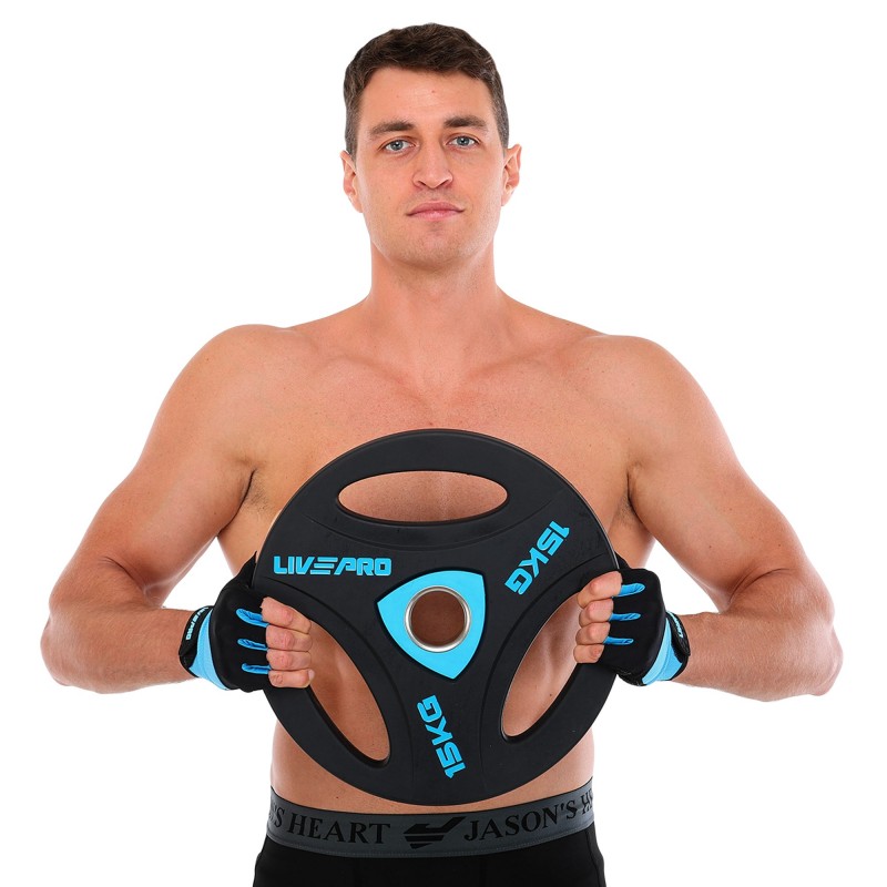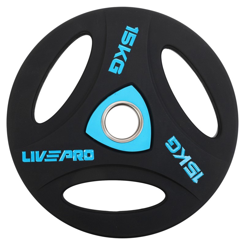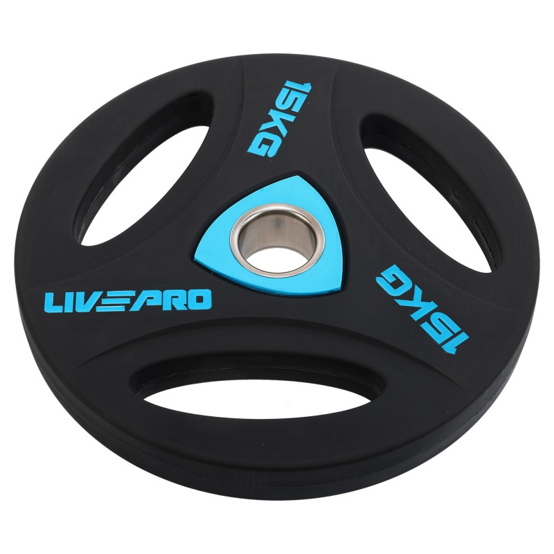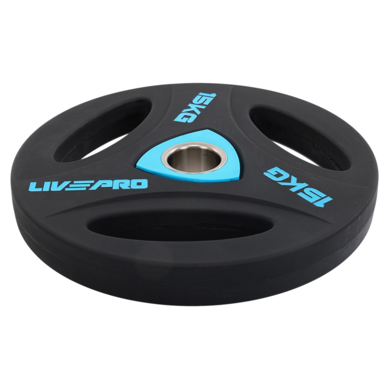 Диски поліуретанові з потрійним хватом та металевою втулкою LiveUp ø51мм, 15кг, чорний, код: LP8020-15