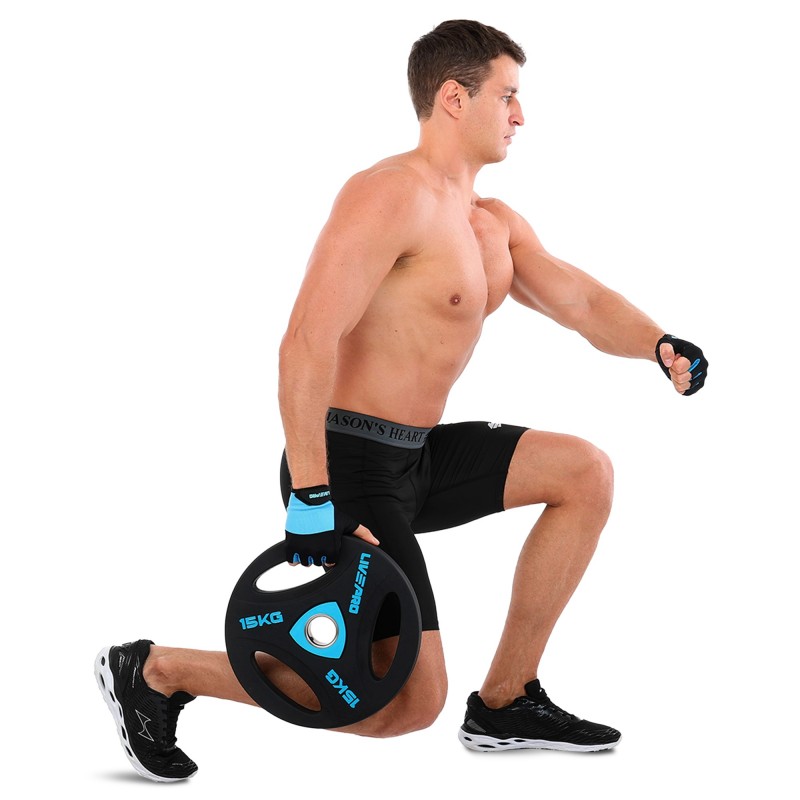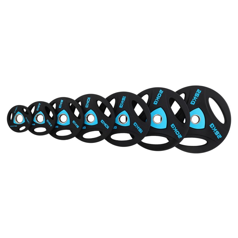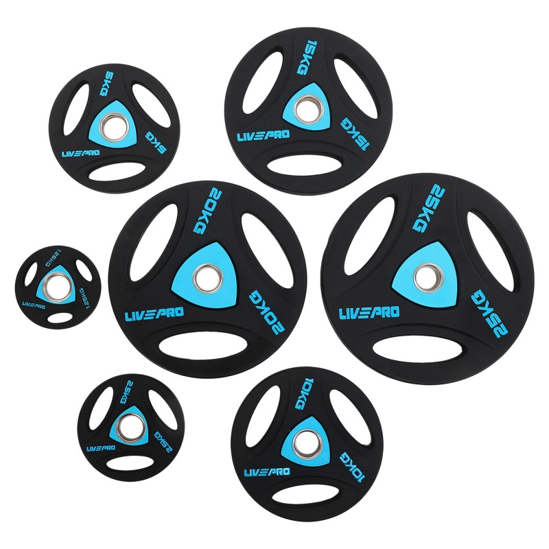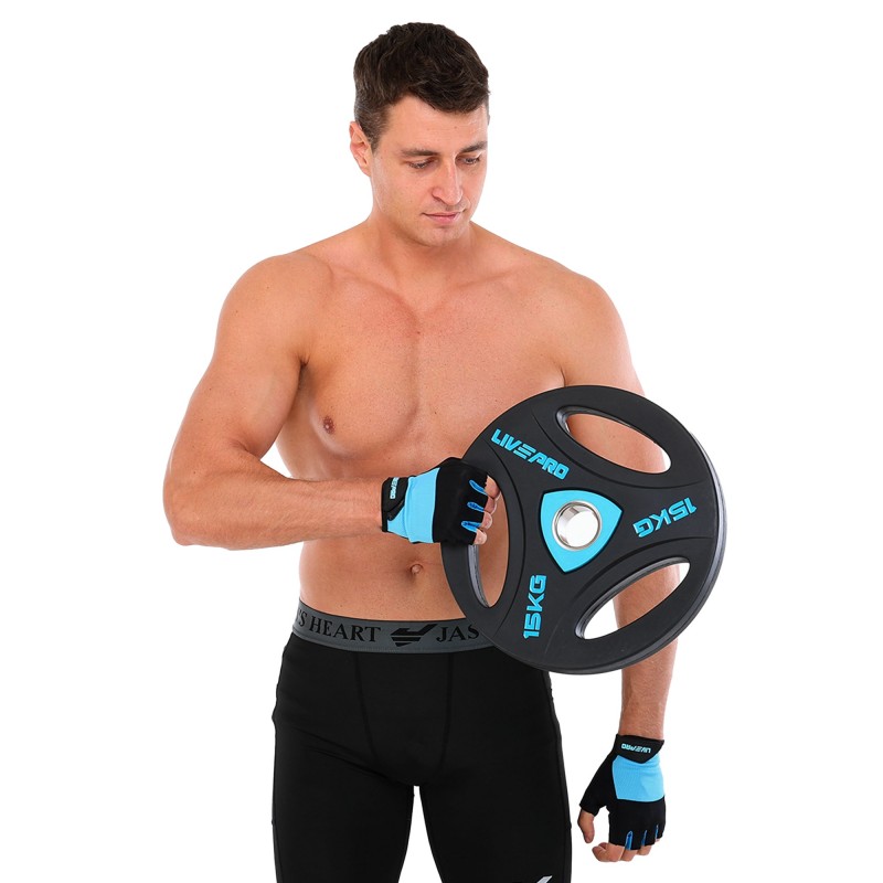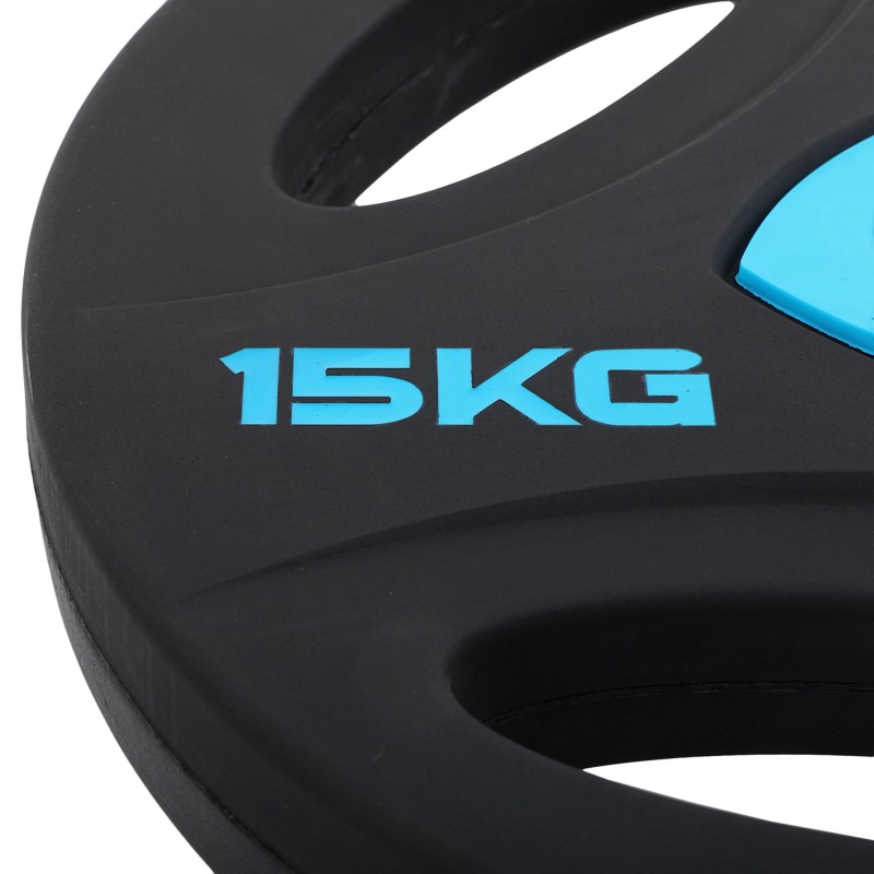 Диски поліуретанові з потрійним хватом та металевою втулкою LiveUp ø51мм, 15кг, чорний, код: LP8020-15