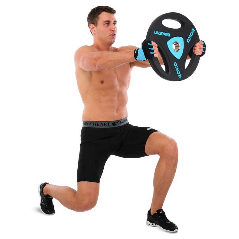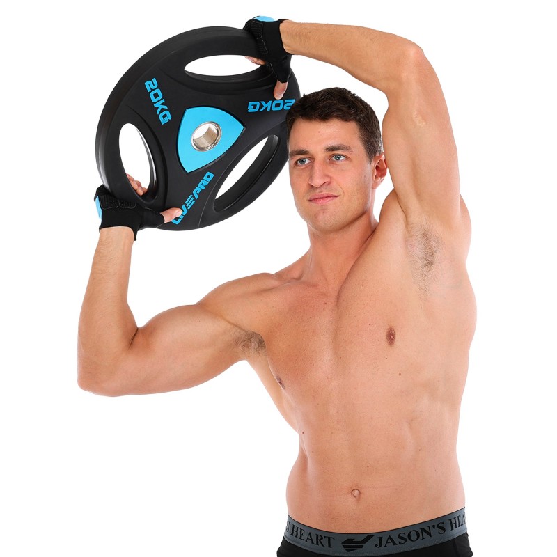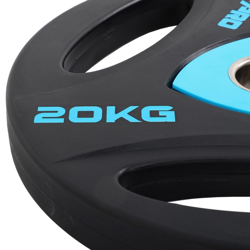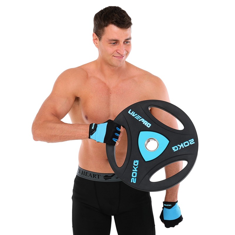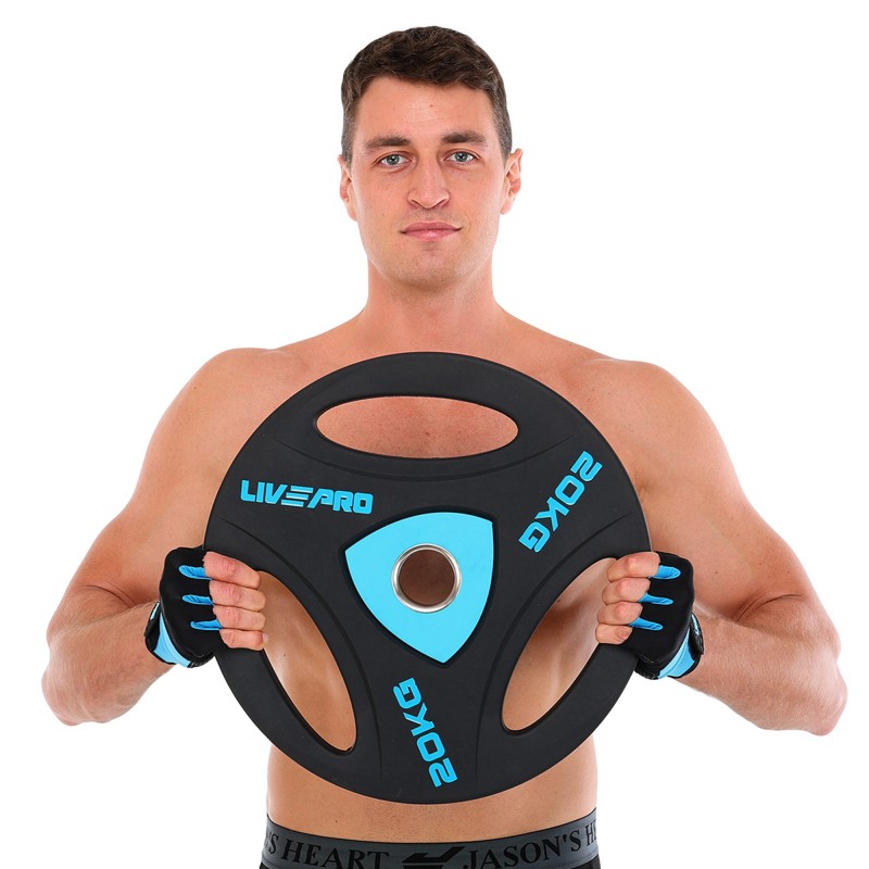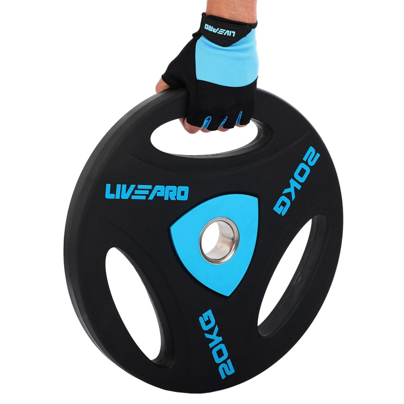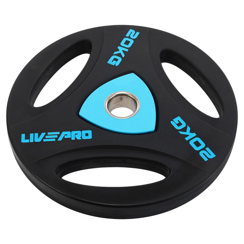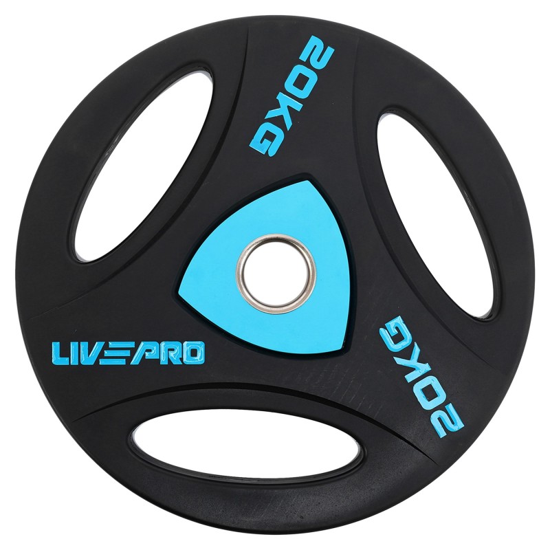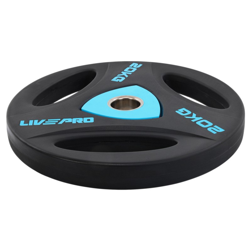 Диски поліуретанові з потрійним хватом та металевою втулкою LiveUp ø51мм, 20кг, чорний, код: LP8020-20