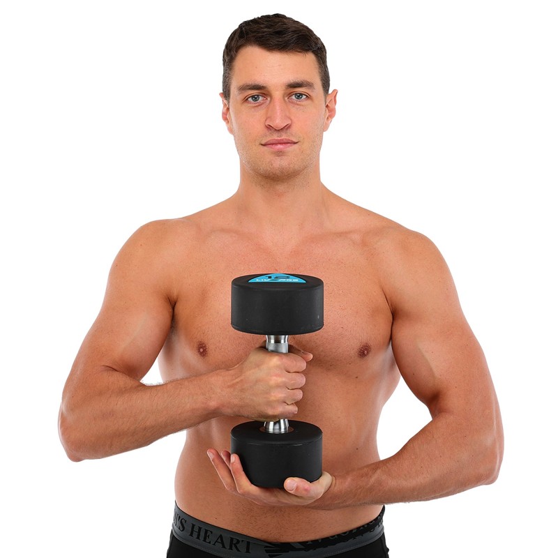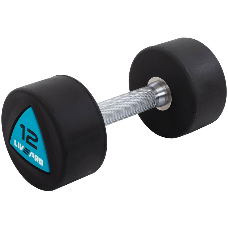 Гантелі цільні професійні з поліуретановим покриттям LiveUp 2х12кг, чорний-синій, код: LP8002-12