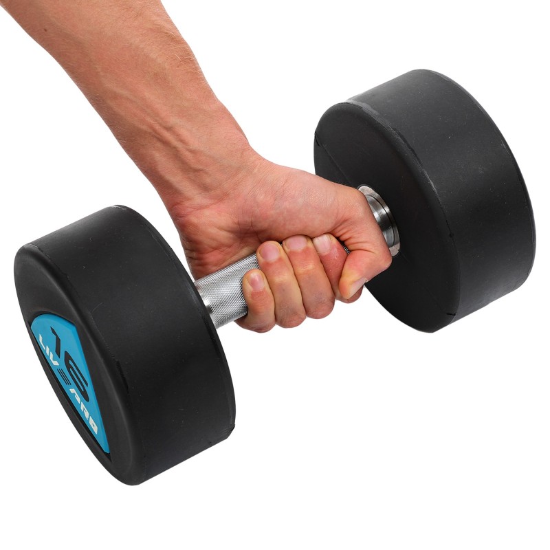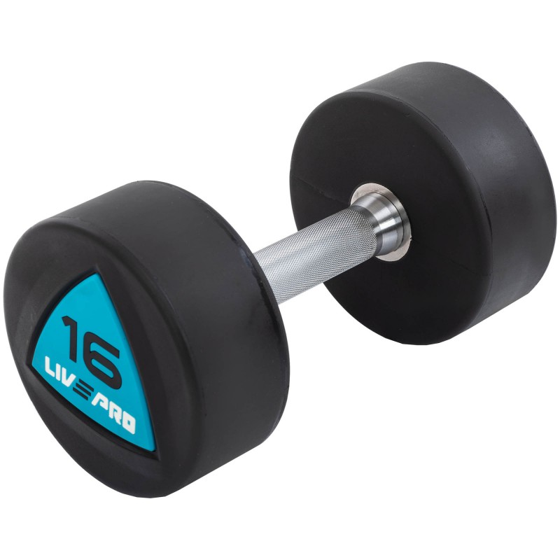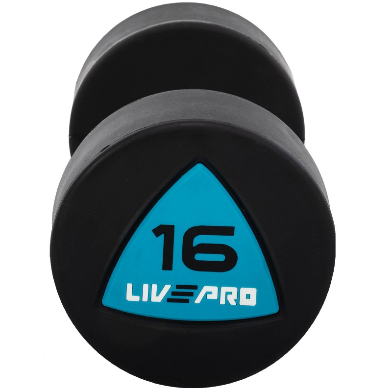 Гантелі цільні професійні з поліуретановим покриттям LiveUp 2х16кг, чорний-синій, код: LP8002-16