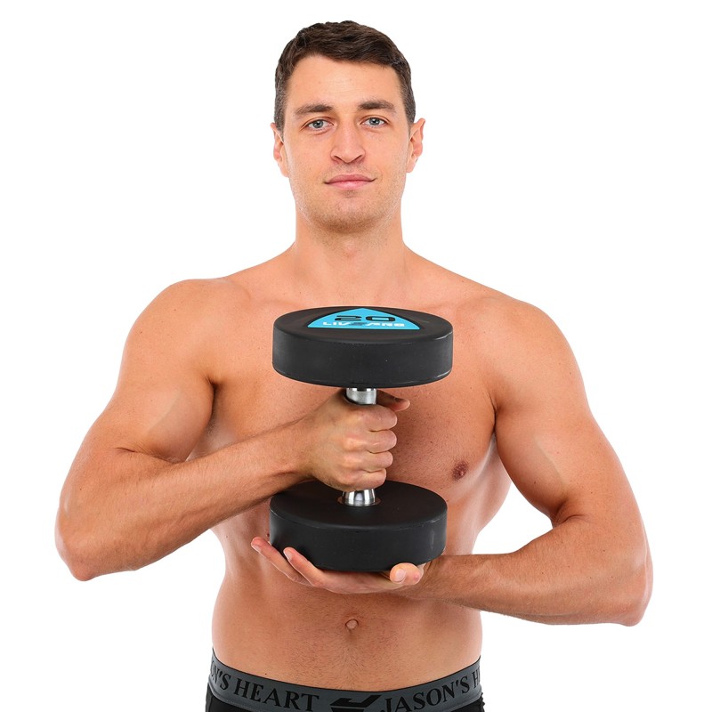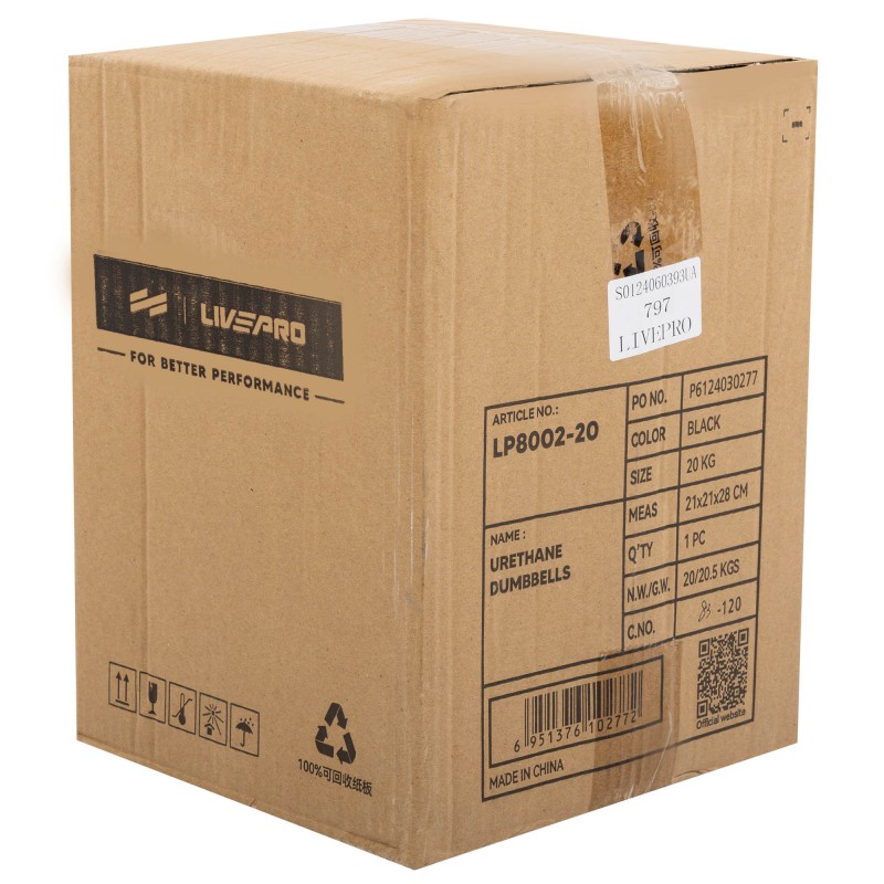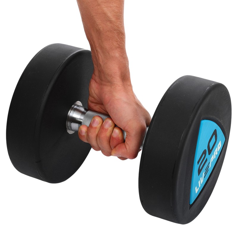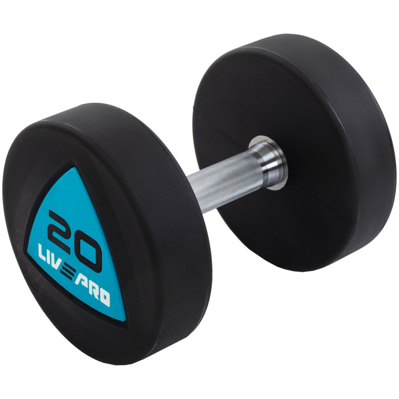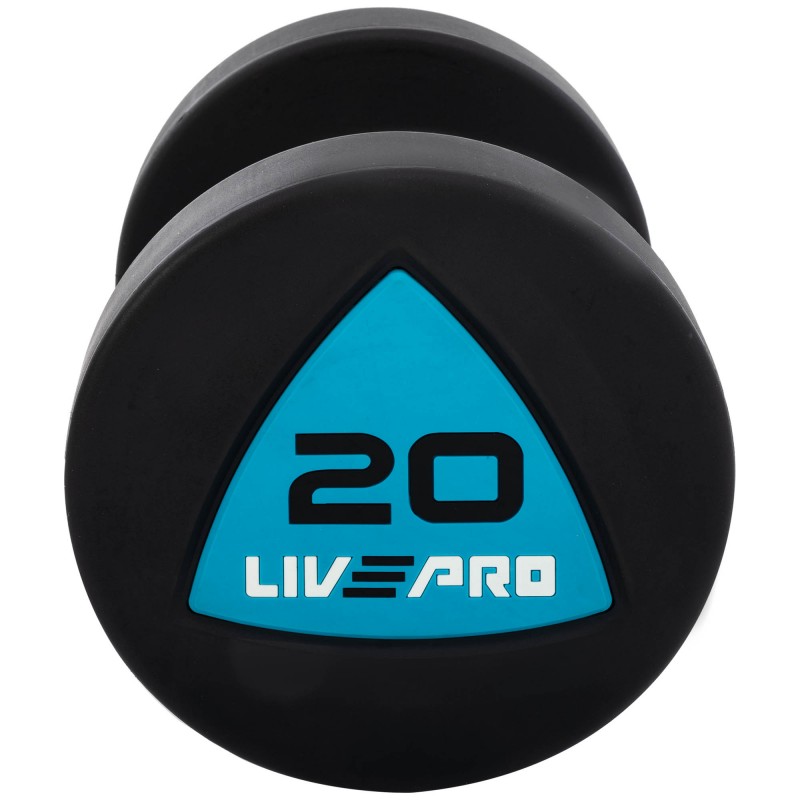 Гантелі цільні професійні з поліуретановим покриттям LiveUp 2х20кг, чорний-синій, код: LP8002-20