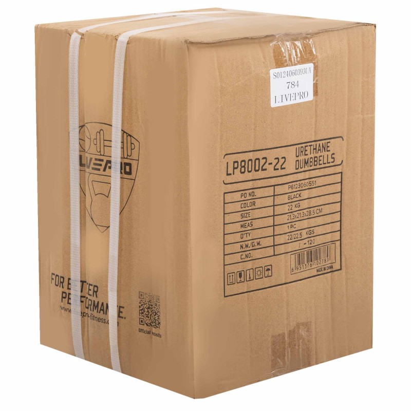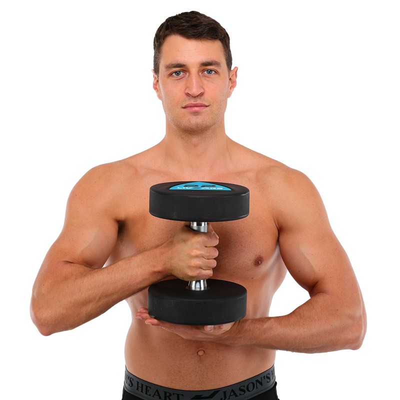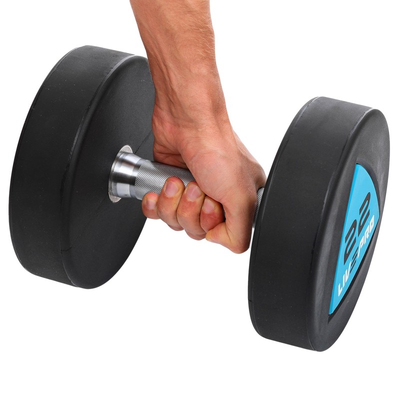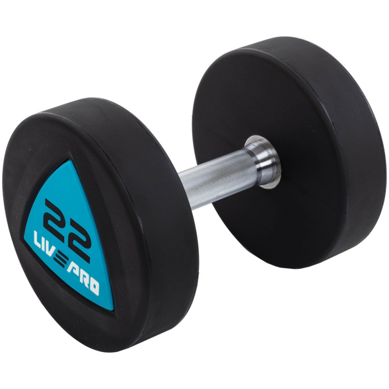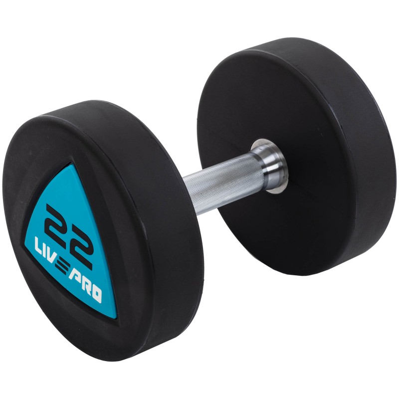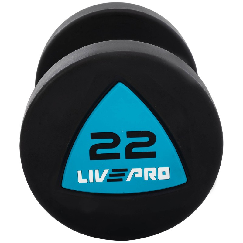 Гантелі цільні професійні з поліуретановим покриттям LiveUp 2х22кг, чорний-синій, код: LP8002-22