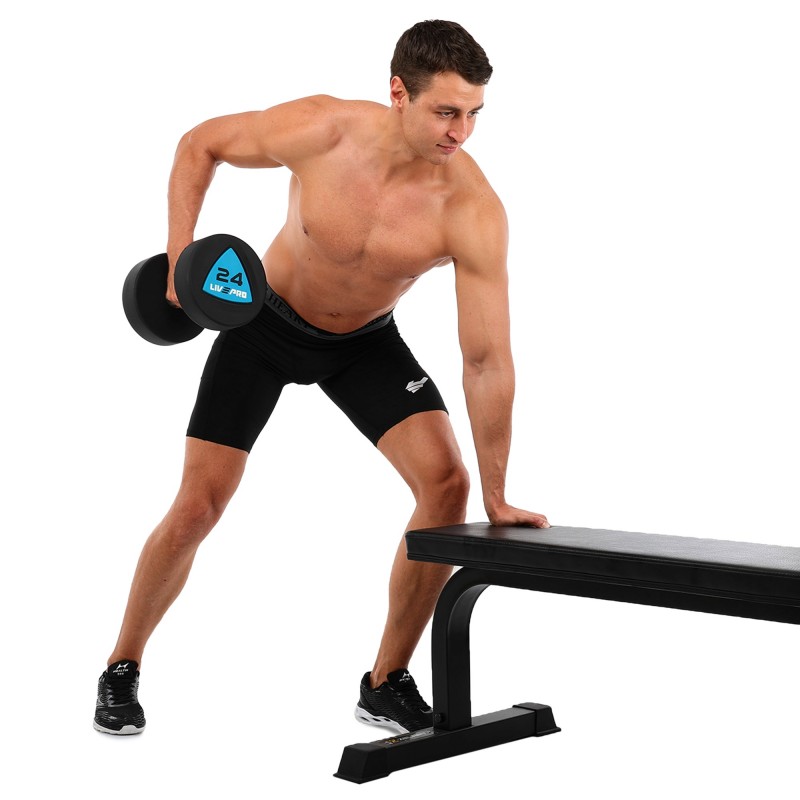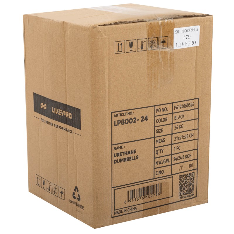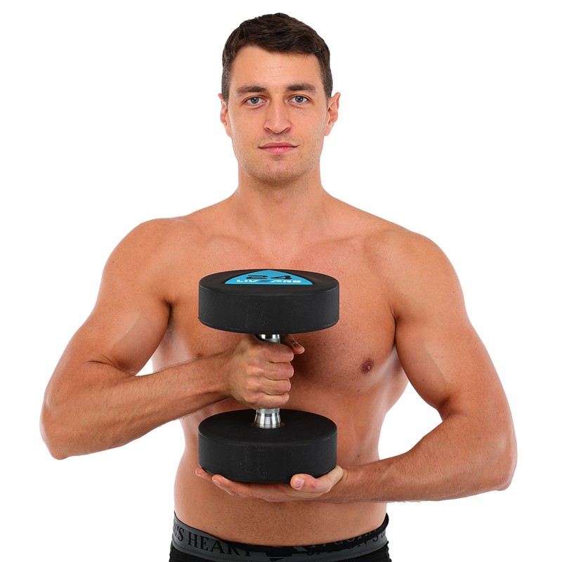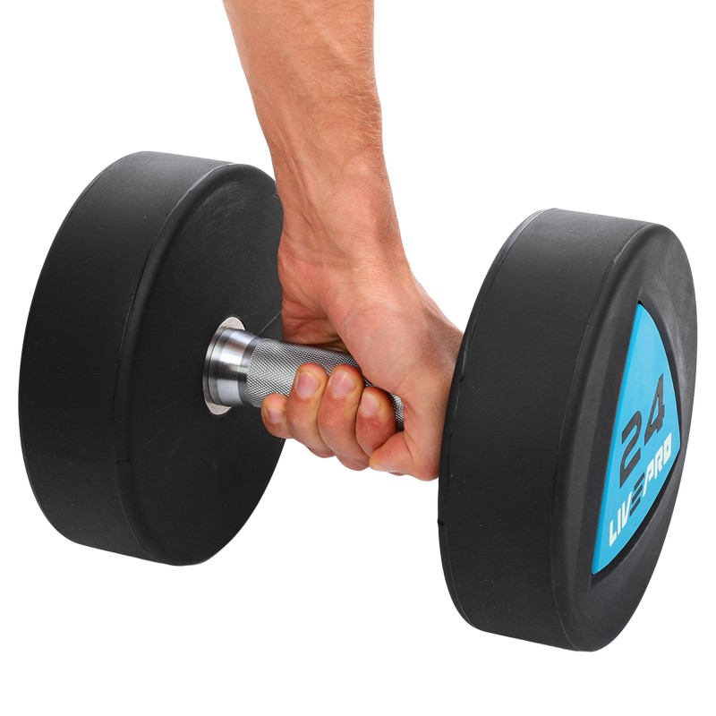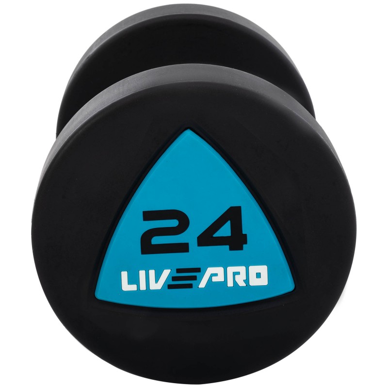 Гантелі цільні професійні з поліуретановим покриттям LiveUp 2х24кг, чорний-синій, код: LP8002-24