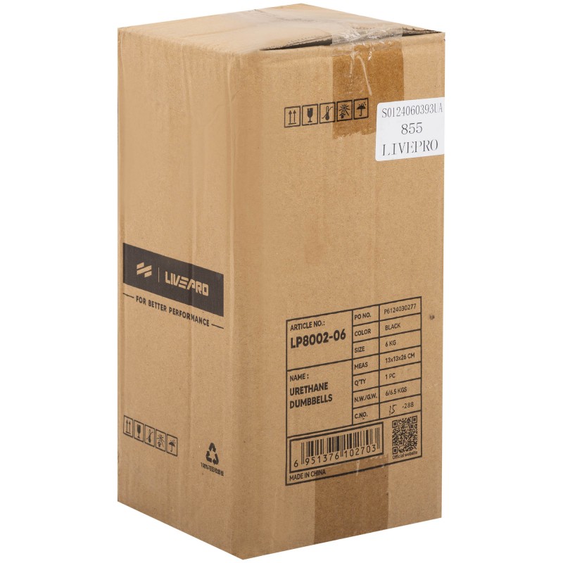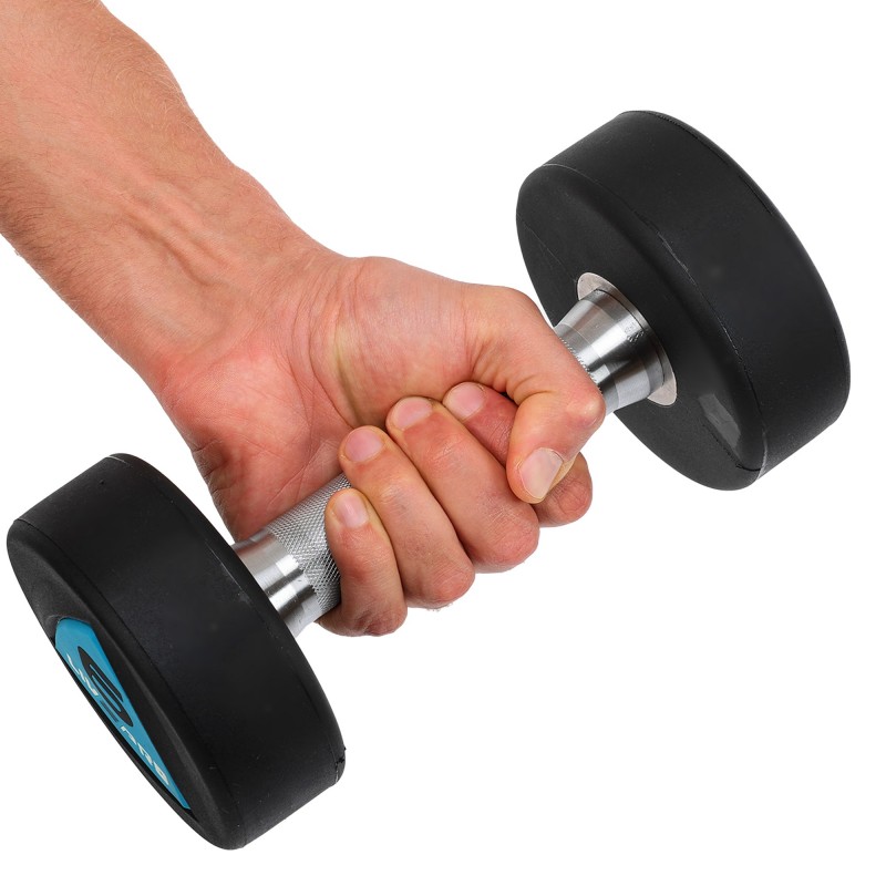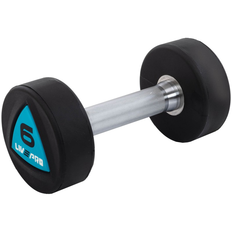 Гантелі цільні професійні з поліуретановим покриттям LiveUp 2х6кг, чорний-синій, код: LP8002-6