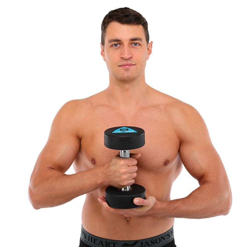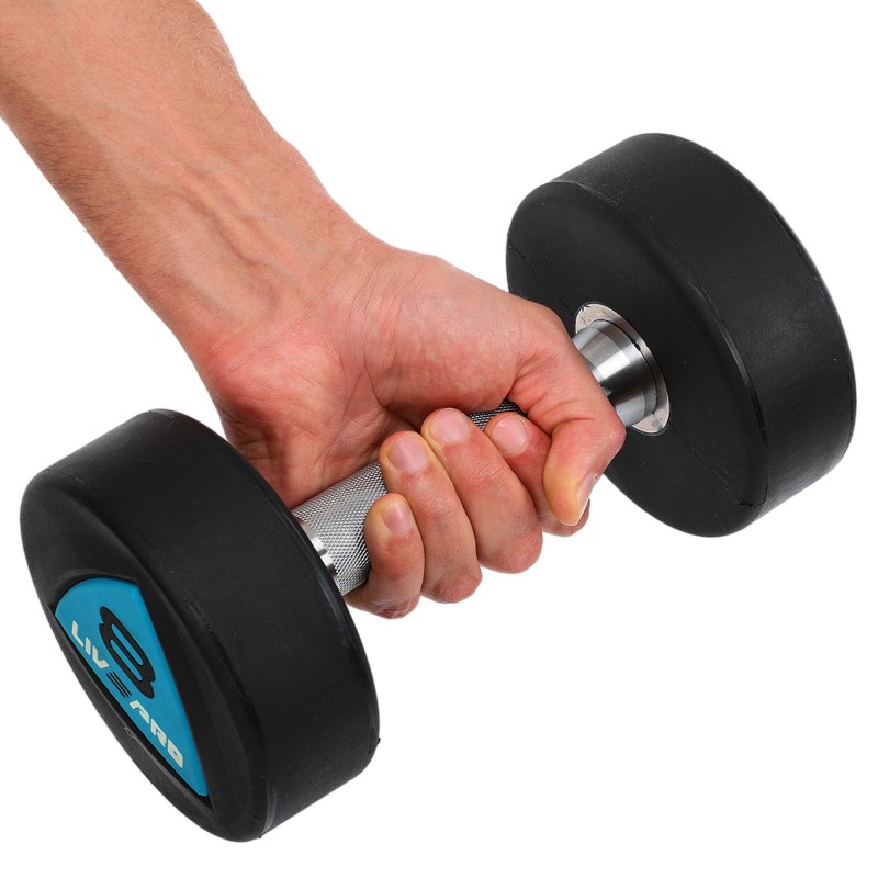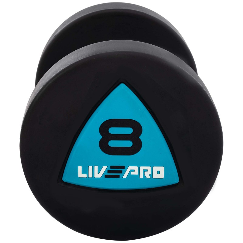 Гантелі цільні професійні з поліуретановим покриттям LiveUp 2х8кг, чорний-синій, код: LP8002-8
