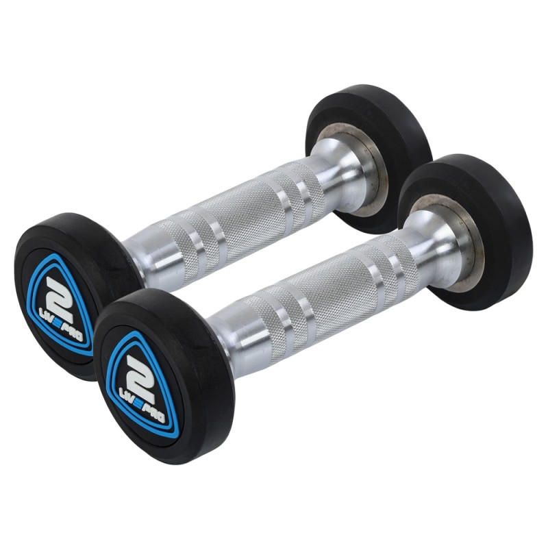 Гантелі цільні професійні з поліуретановим покриттям LiveUp 2х2кг, чорний-синій, код: LP8075-2