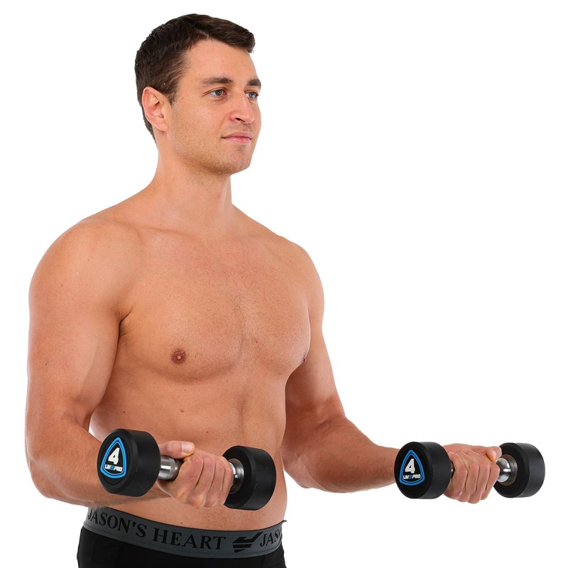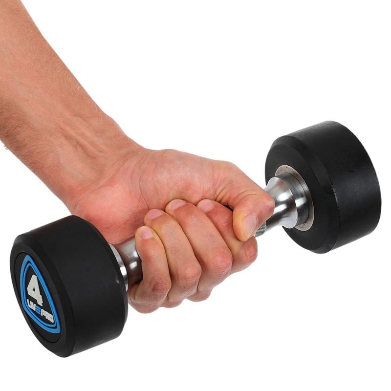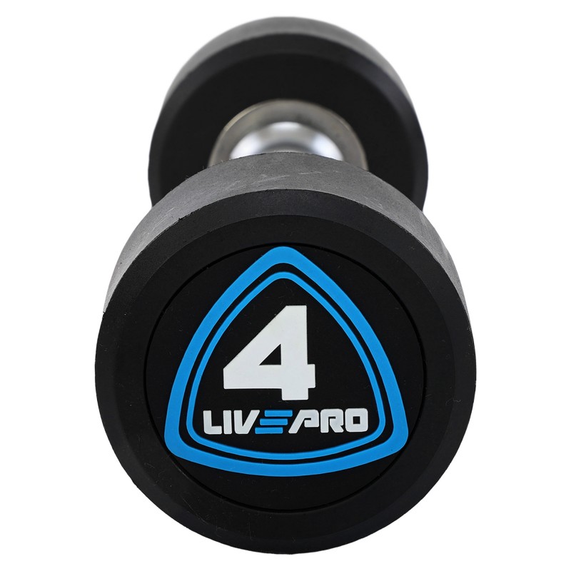 Гантелі цільні професійні з поліуретановим покриттям LiveUp 2х4кг, чорний-синій, код: LP8075-4