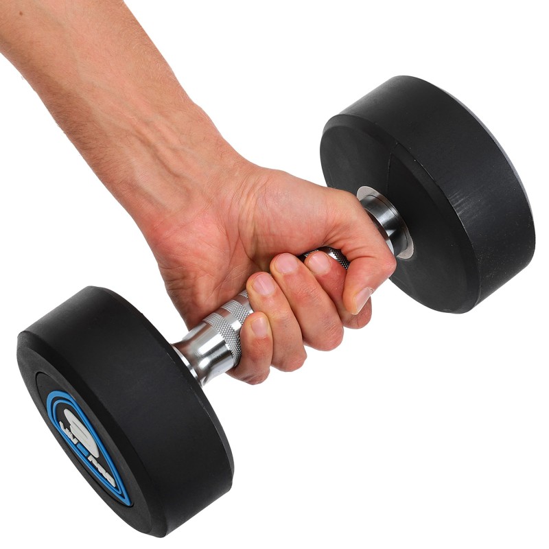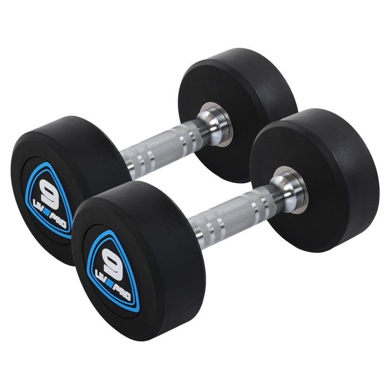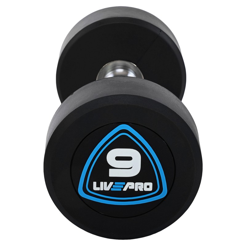 Гантелі цільні професійні з поліуретановим покриттям LiveUp 2х9кг, чорний-синій, код: LP8075-9