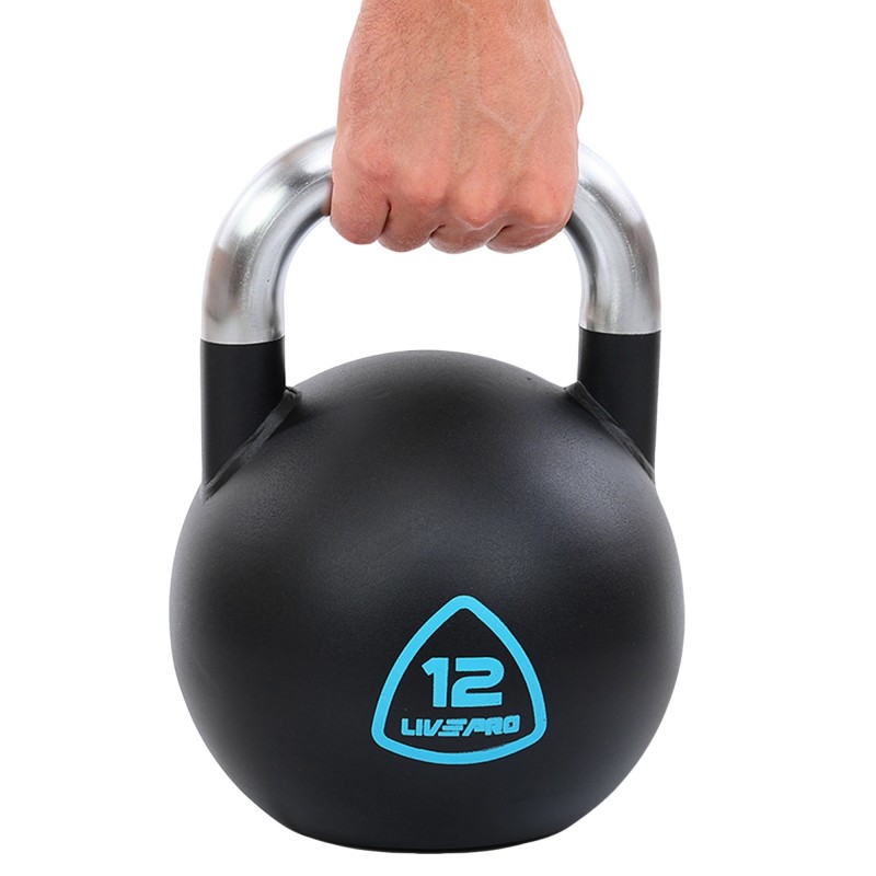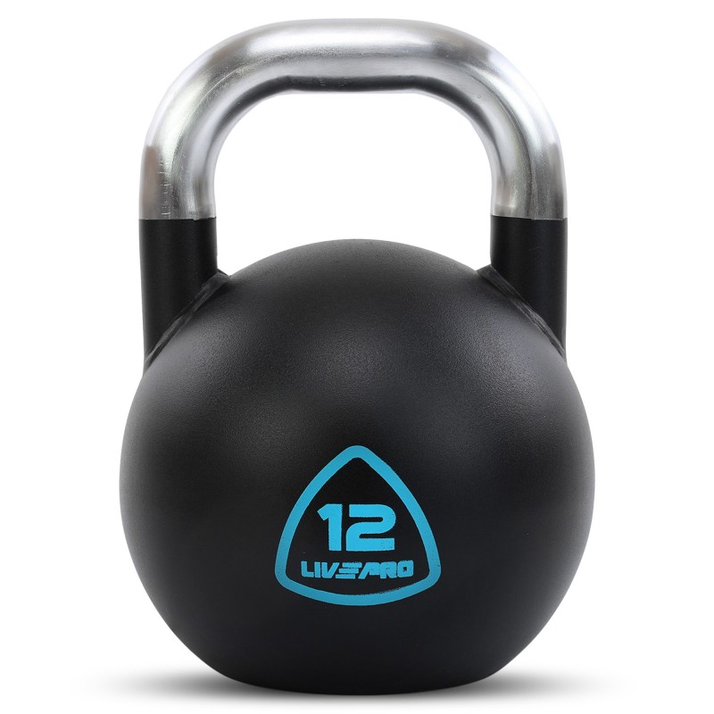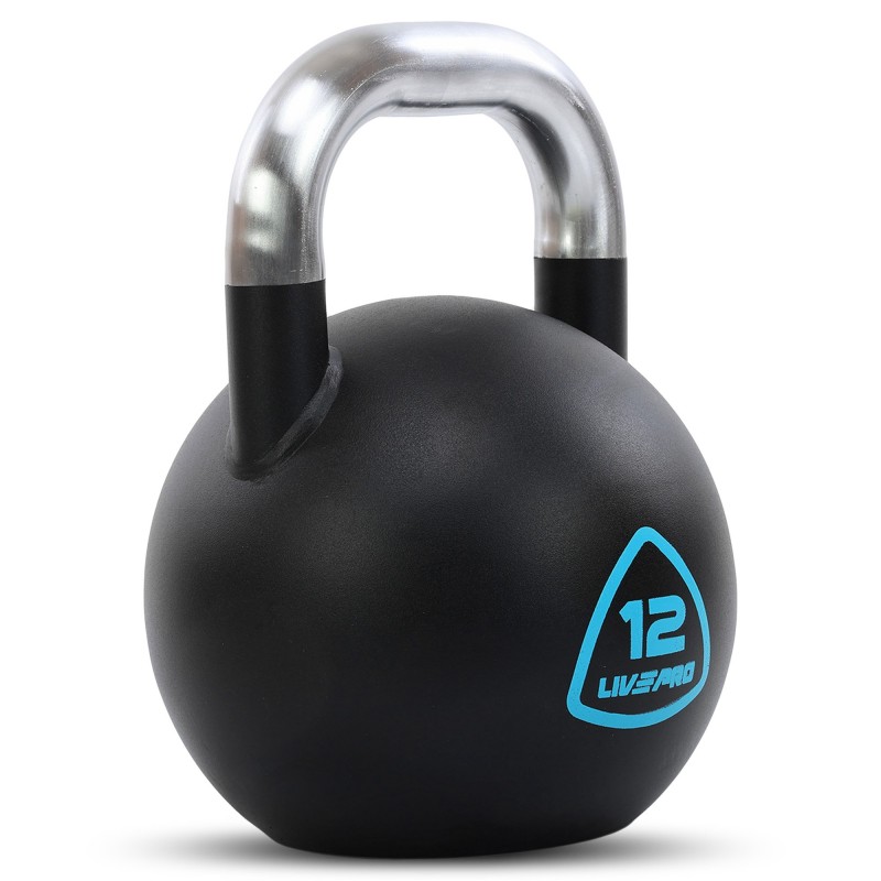 Гиря змагальна цільна сталева пофарбована з хромованою ручкою LiveUp 12кг, чорний, код: LP8042-12