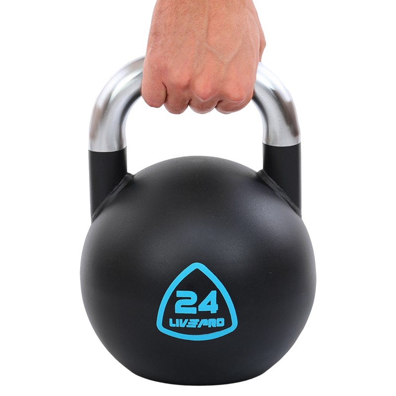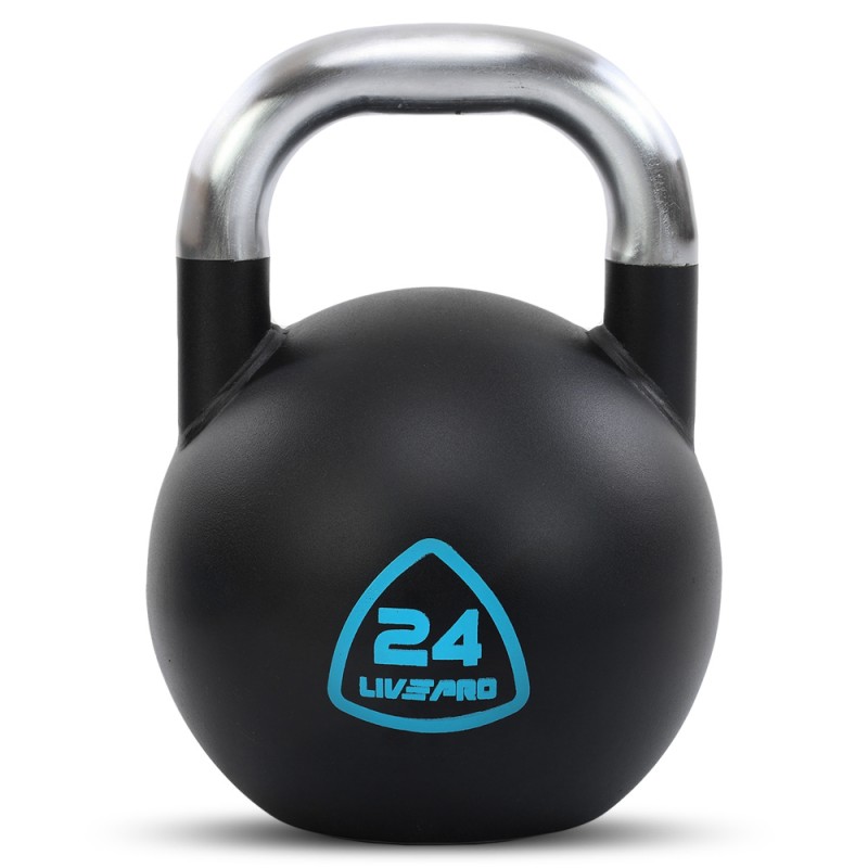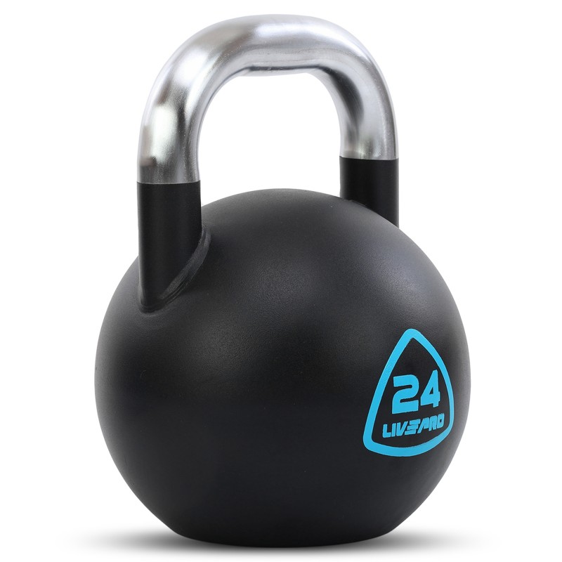 Гиря змагальна цільна сталева пофарбована з хромованою ручкою LiveUp 24кг, чорний, код: LP8042-24
