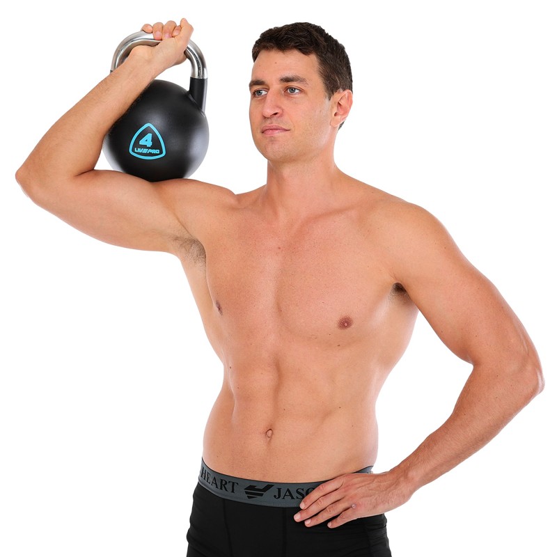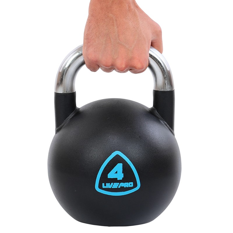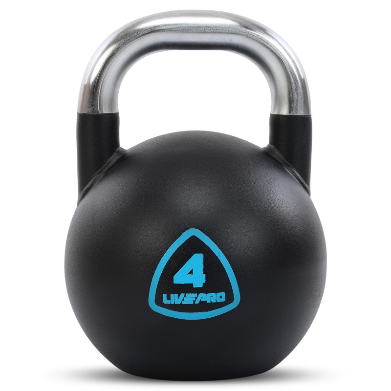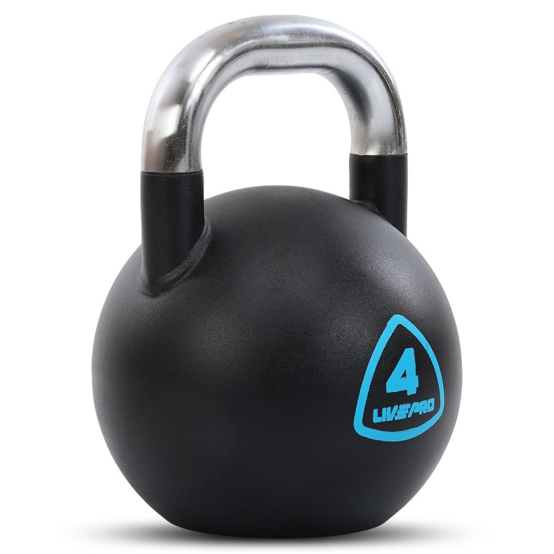 Гиря змагальна цільна сталева пофарбована з хромованою ручкою LiveUp 4кг, чорний, код: LP8042-4