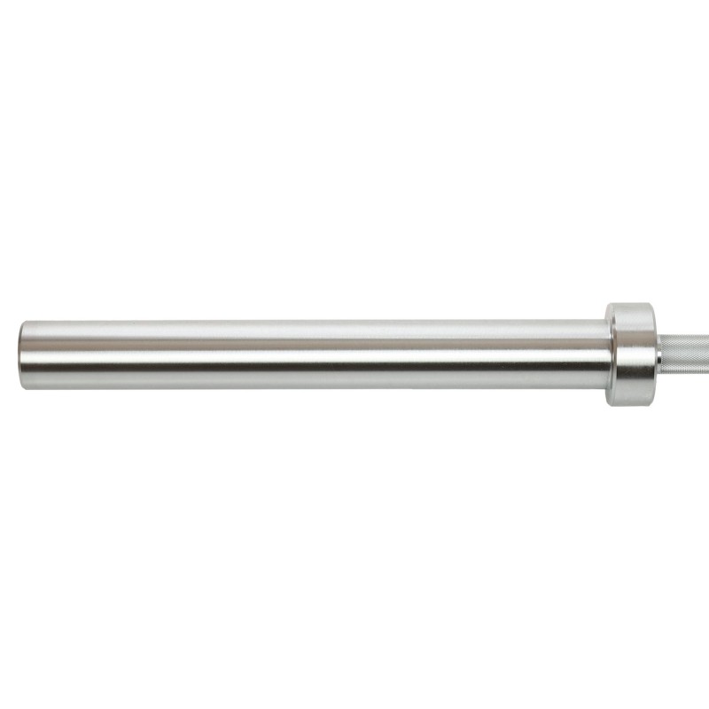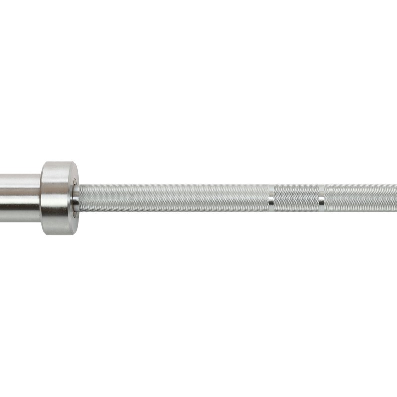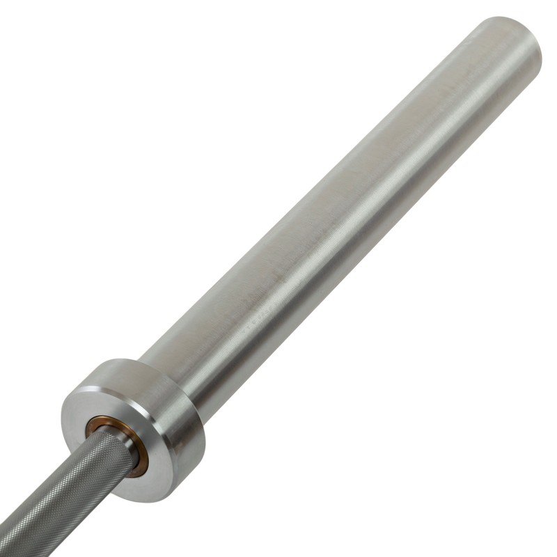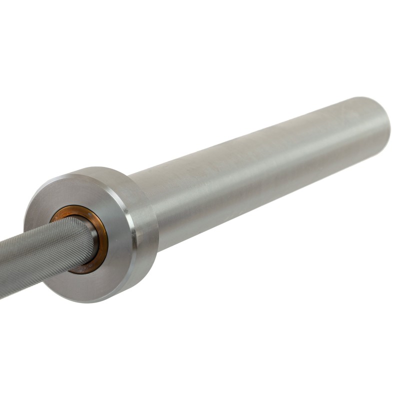 Діаметр посадкових втулок сумісний з дисками стандартного розміру. Вільне, дуже плавне обертання втулок забезпечують вісім голчастих підшипників ковзання. Накатка з насічками: шість секцій плюс центральний накат гарантують міцний і надійний хват. Накатка по центру запобігає ковзанню снаряда, дає змогу виконувати не тільки тяги і підйоми, а й присіди зі штангою. Спеціальне покриття втулок і руків'я запобігає зносу і дає змогу використовувати снаряд набагато довше.