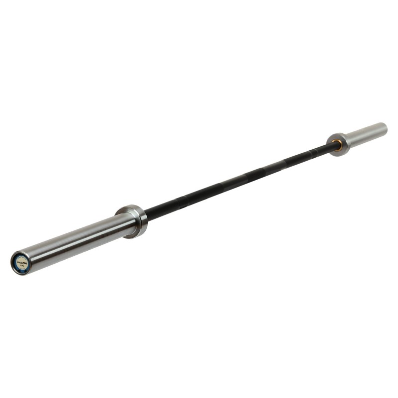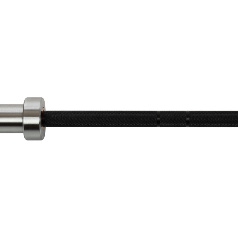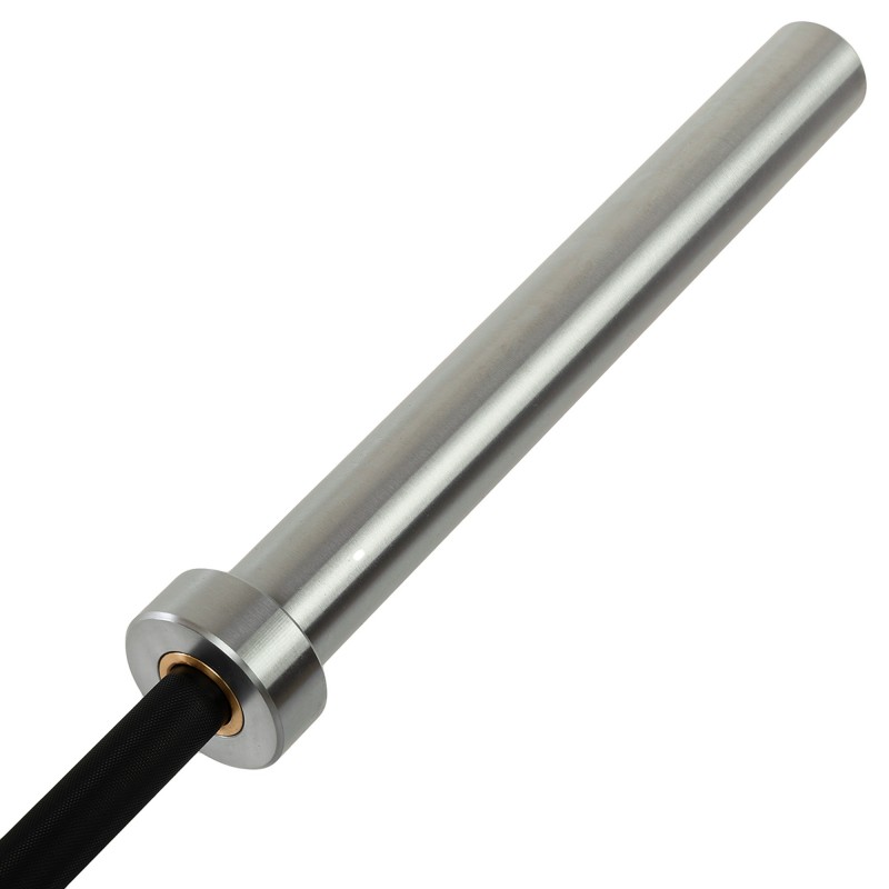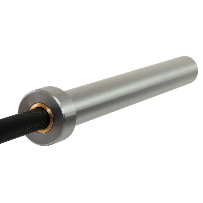 Діаметр посадкових втулок сумісний з дисками стандартного розміру. Вільне, дуже плавне обертання втулок забезпечують вісім голчастих підшипників ковзання. Накатка з насічками: шість секцій плюс центральний накат гарантують міцний і надійний хват. Накатка по центру запобігає ковзанню снаряда, дає змогу виконувати не тільки тяги і підйоми, а й присіди зі штангою. Спеціальне покриття втулок і руків'я запобігає зносу і дає змогу використовувати снаряд набагато довше.
