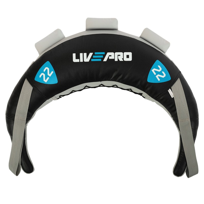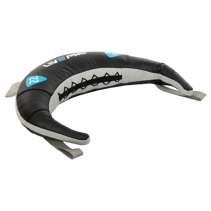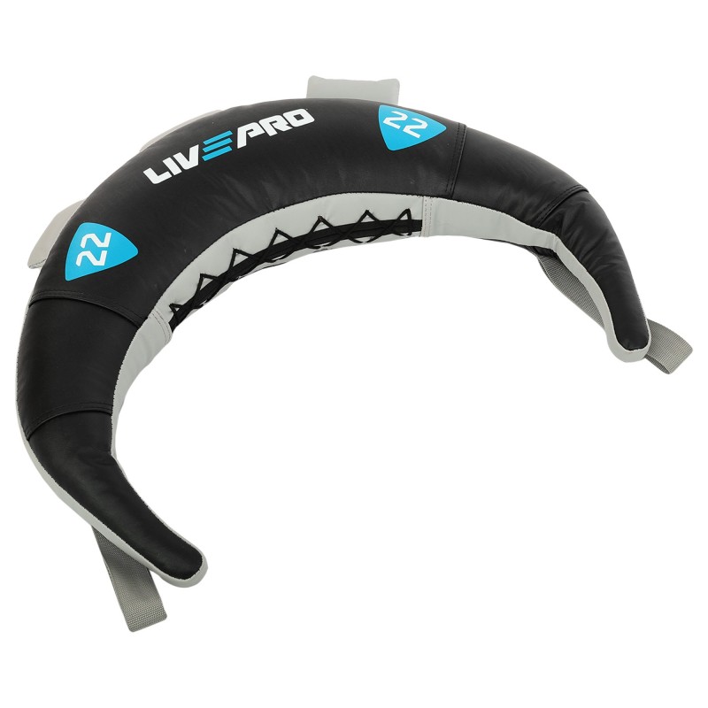 Болгарський мішок від LiveUp - простий і функціональний тренажер для кросфіту, здатний замінити гирі, гантелі, штангу, а в деяких вправах і спаринг-партнера. Мішок має серповидну форму, що дозволяє зручно закинути його на плечі. Міцні ручки з нейлонової стропи дають змогу виконувати хват із різних положень, задіяти різні групи м'язів. Для виготовлення болгарського мішка використовується полівінілхлорид - штучний замінник шкіри підвищеної міцності. Матеріал не пропускає воду, захищаючи наповнювач від вологи і деформацій. Усередині розташована важка кулька із залізного піску, що забезпечує стабільне положення центру ваги. Вона не деформується в процесі експлуатації тренажера, порожній простір заповнений наповнювачем із пінного матеріалу. Міцність мішка забезпечують посилені шви та стропа завтовшки 3,6 см, яка оперізує всю сумку зсередини.