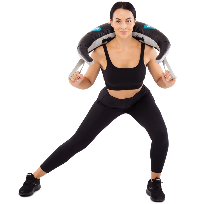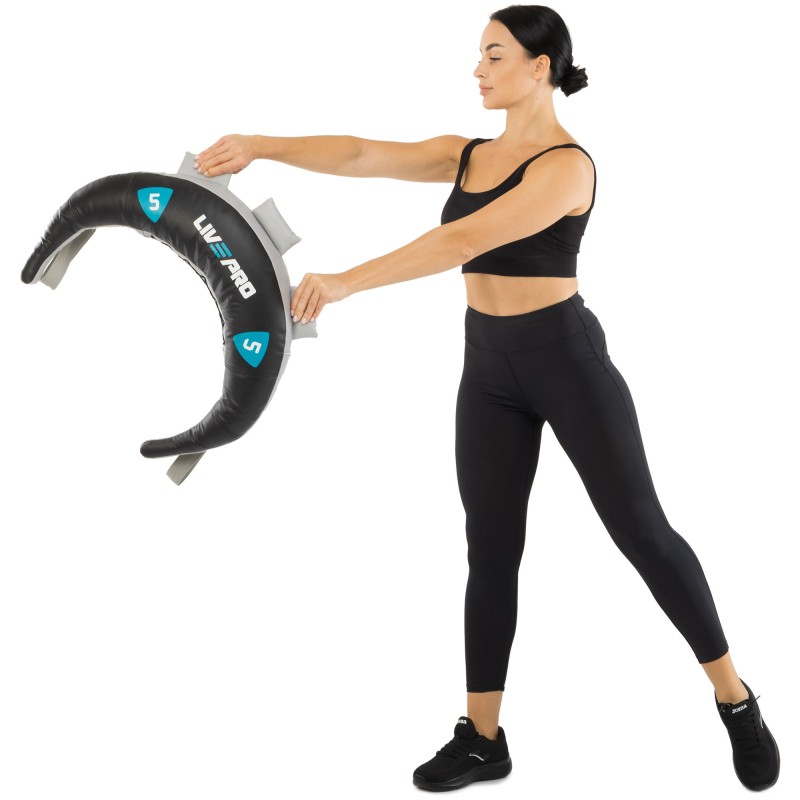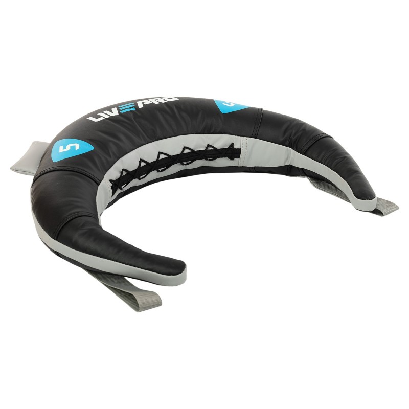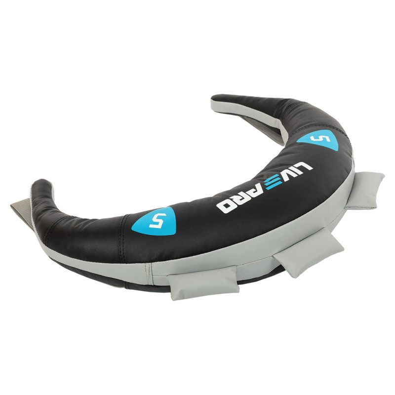 Болгарський мішок від LiveUp - простий і функціональний тренажер для кросфіту, здатний замінити гирі, гантелі, штангу, а в деяких вправах і спаринг-партнера. Мішок має серповидну форму, що дозволяє зручно закинути його на плечі. Міцні ручки з нейлонової стропи дають змогу виконувати хват із різних положень, задіяти різні групи м'язів. Для виготовлення болгарського мішка використовується полівінілхлорид - штучний замінник шкіри підвищеної міцності. Матеріал не пропускає воду, захищаючи наповнювач від вологи і деформацій. Усередині розташована важка кулька із залізного піску, що забезпечує стабільне положення центру ваги. Вона не деформується в процесі експлуатації тренажера, порожній простір заповнений наповнювачем із пінного матеріалу. Міцність мішка забезпечують посилені шви та стропа завтовшки 3,6 см, яка оперізує всю сумку зсередини.