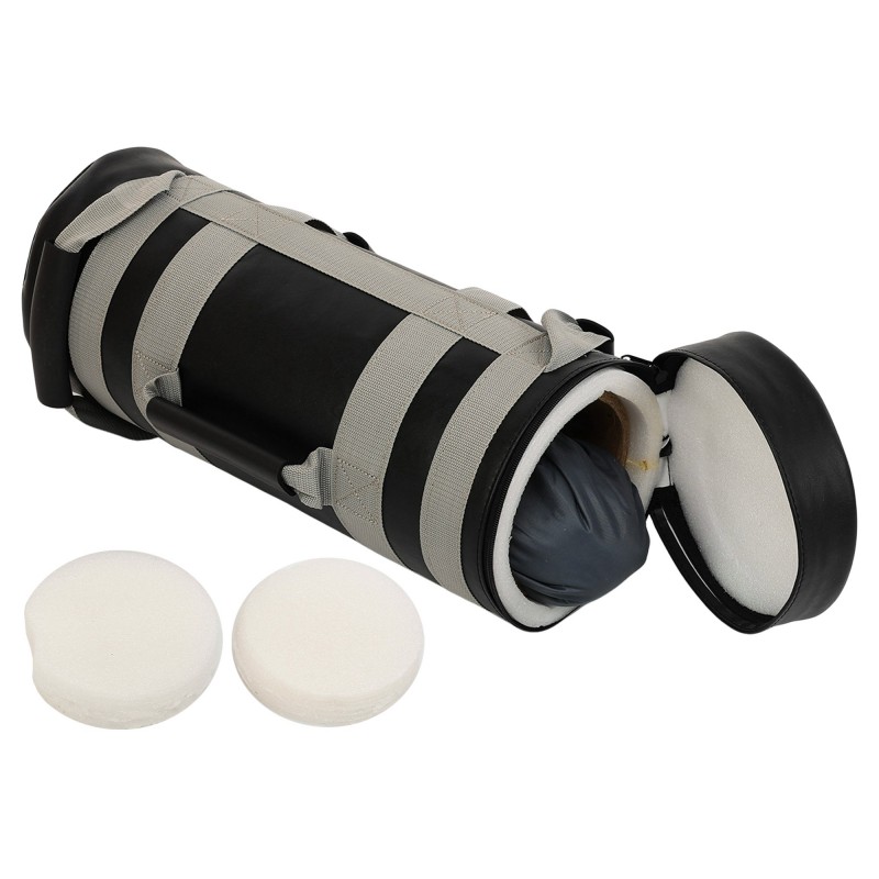 Мішок виготовлено з міцної водонепроникної штучної шкіри. Всередині знаходиться противага із залізного піску. Під час виконання різних вправ, вона утримується в середині мішка, забезпечуючи стійкість центру ваги. Для підтримки правильної циліндричної форми та запобігання травмам використовується спеціальний пінистий наповнювач. Матеріал гарантує, що мішок залишиться стійким до деформацій навіть після тривалого інтенсивного використання. Високу міцність мішка забезпечує стропа шириною 5 см, яка оперізує всю конструкцію і формує зручні руків'я завдовжки 13,5 см, вкриті потовщеною шкірою. Розташування ручок дає змогу виконувати захоплення з різних положень. Усі шви на мішку - посилені.